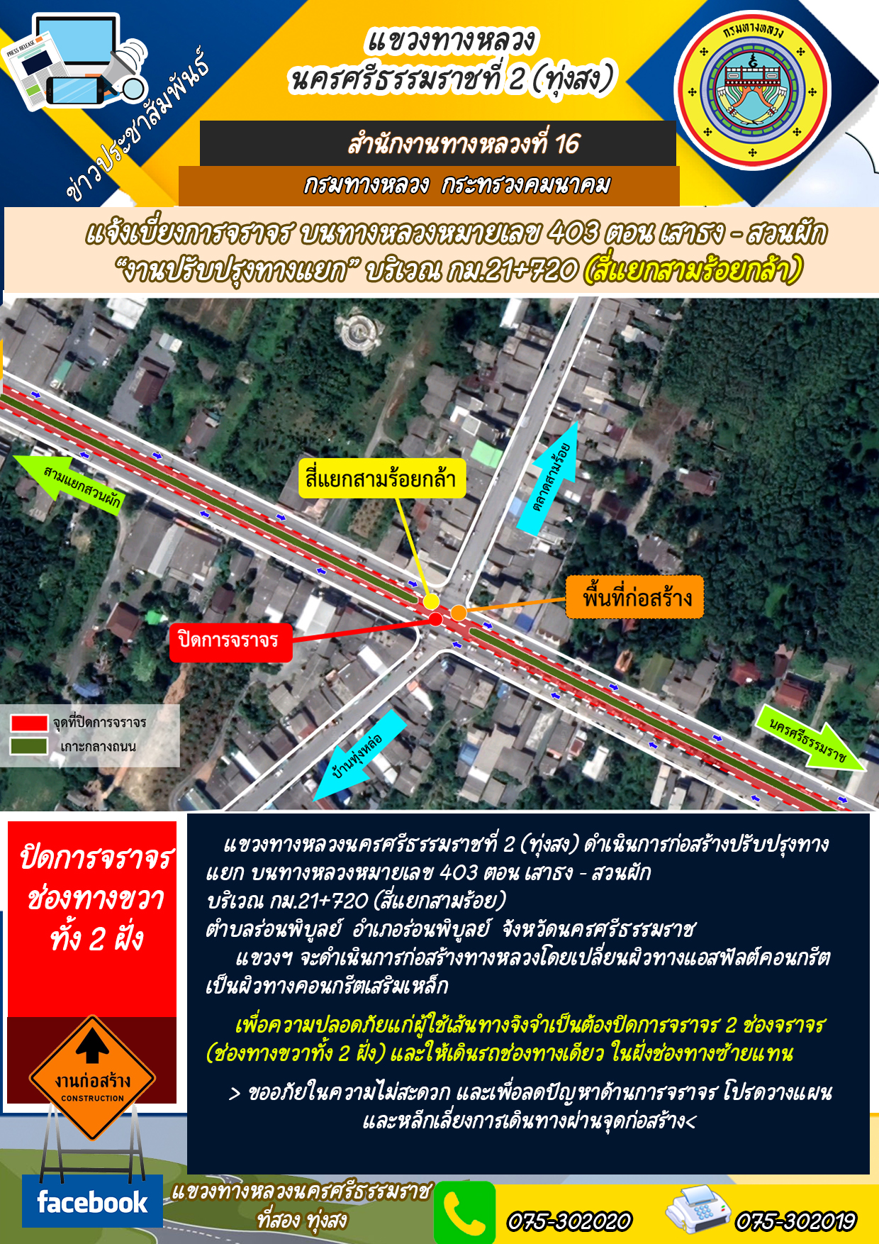 300 25/04/2565 แจ้งเบี่ยงการจราจร ทล.403 บริเวณ กม.21+720 (สี่แยกสามร้อยกล้า)