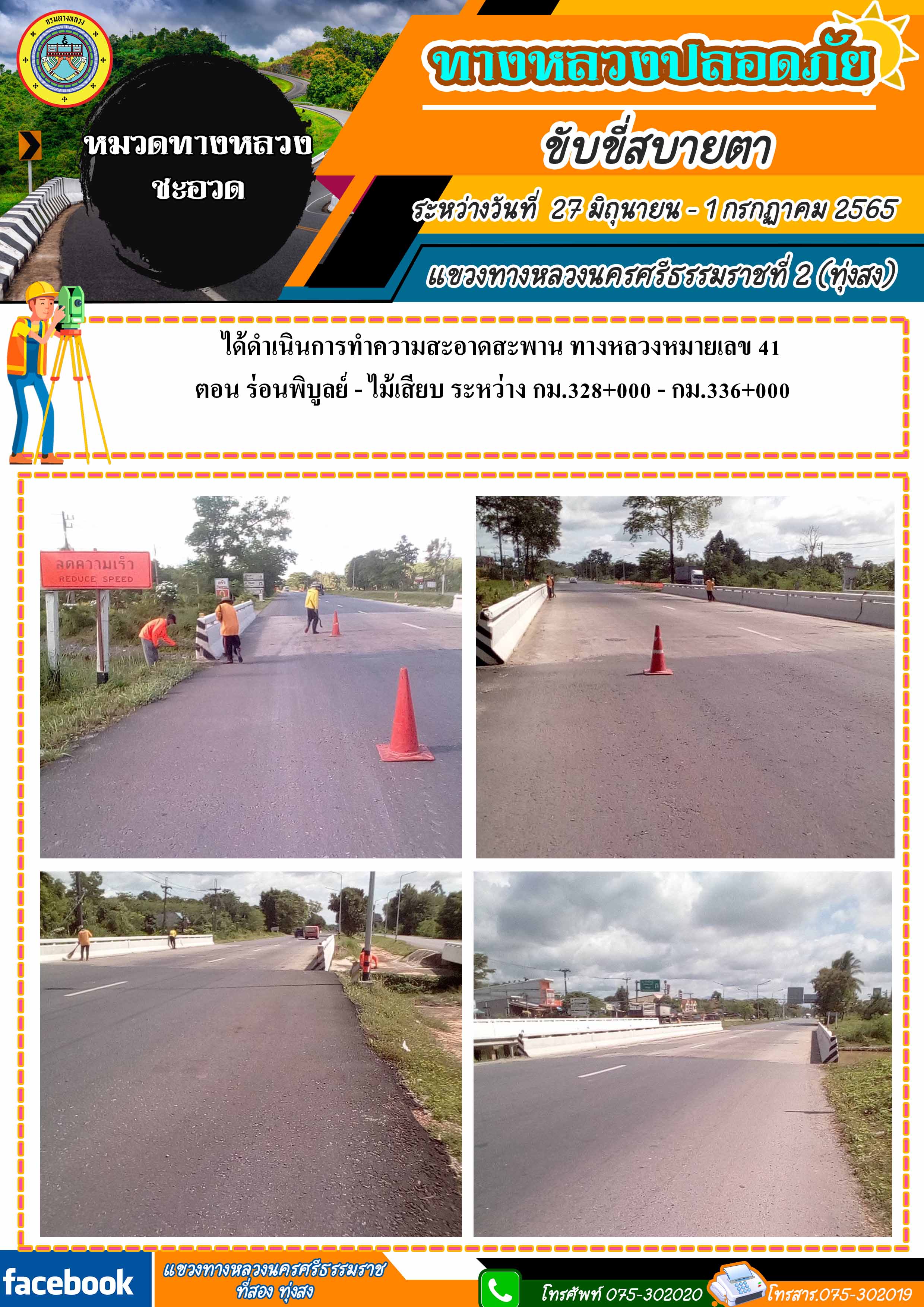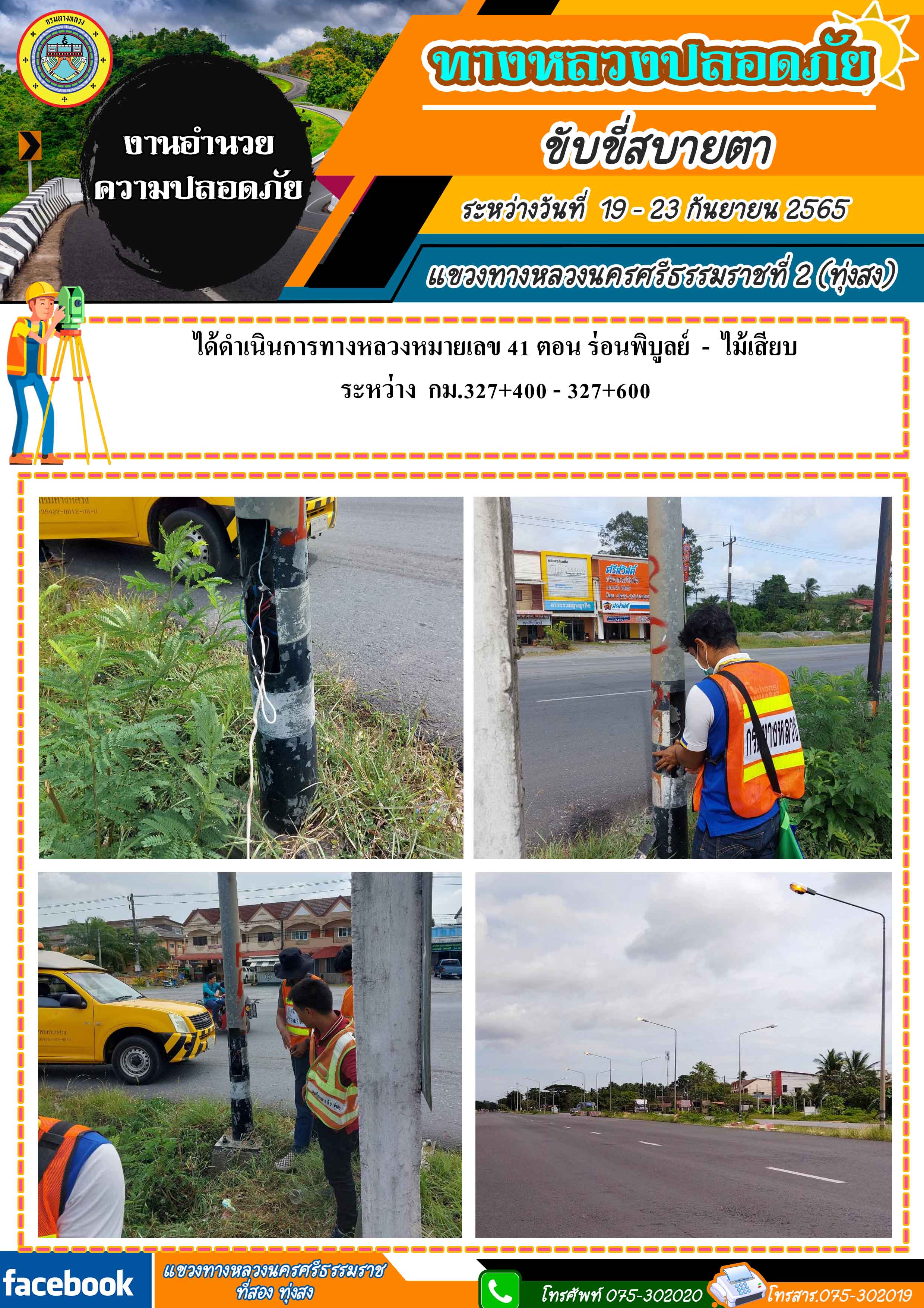 288 07/10/2565 ผลการปฏิบัติงานประจำสัปดาห์ของแขวงทางหลวงนครศรีธรรมราชที่ 2 (ทุ่งสง) ระหว่างวันที่ 3 - 7 ตุลาคม 2565
