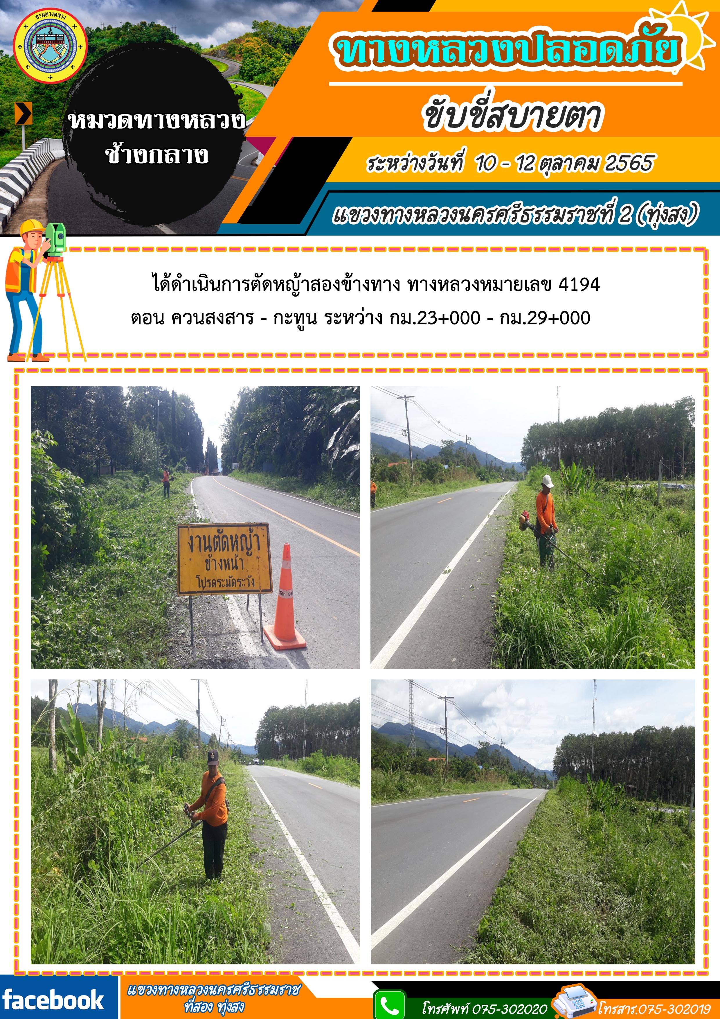 287 12/10/2565 ผลการปฏิบัติงานประจำสัปดาห์ของแขวงทางหลวงนครศรีธรรมราชที่ 2 (ทุ่งสง) ระหว่างวันที่ 10 - 12 ตุลาคม 2565