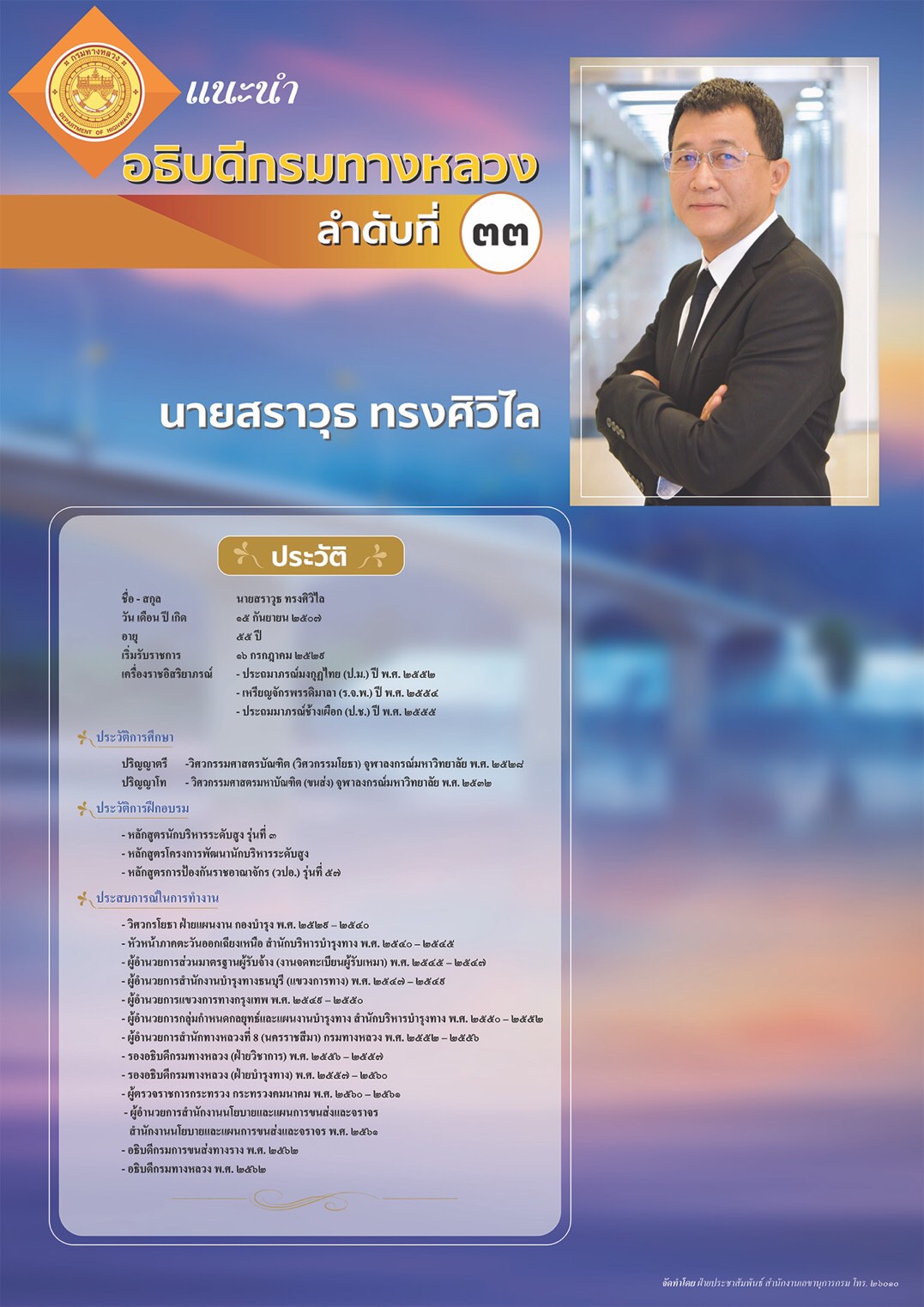 อธิบดีกรมทางหลวง ลำดับที่ ๓๓ : นายสราวุธ ทรงศิวิไล