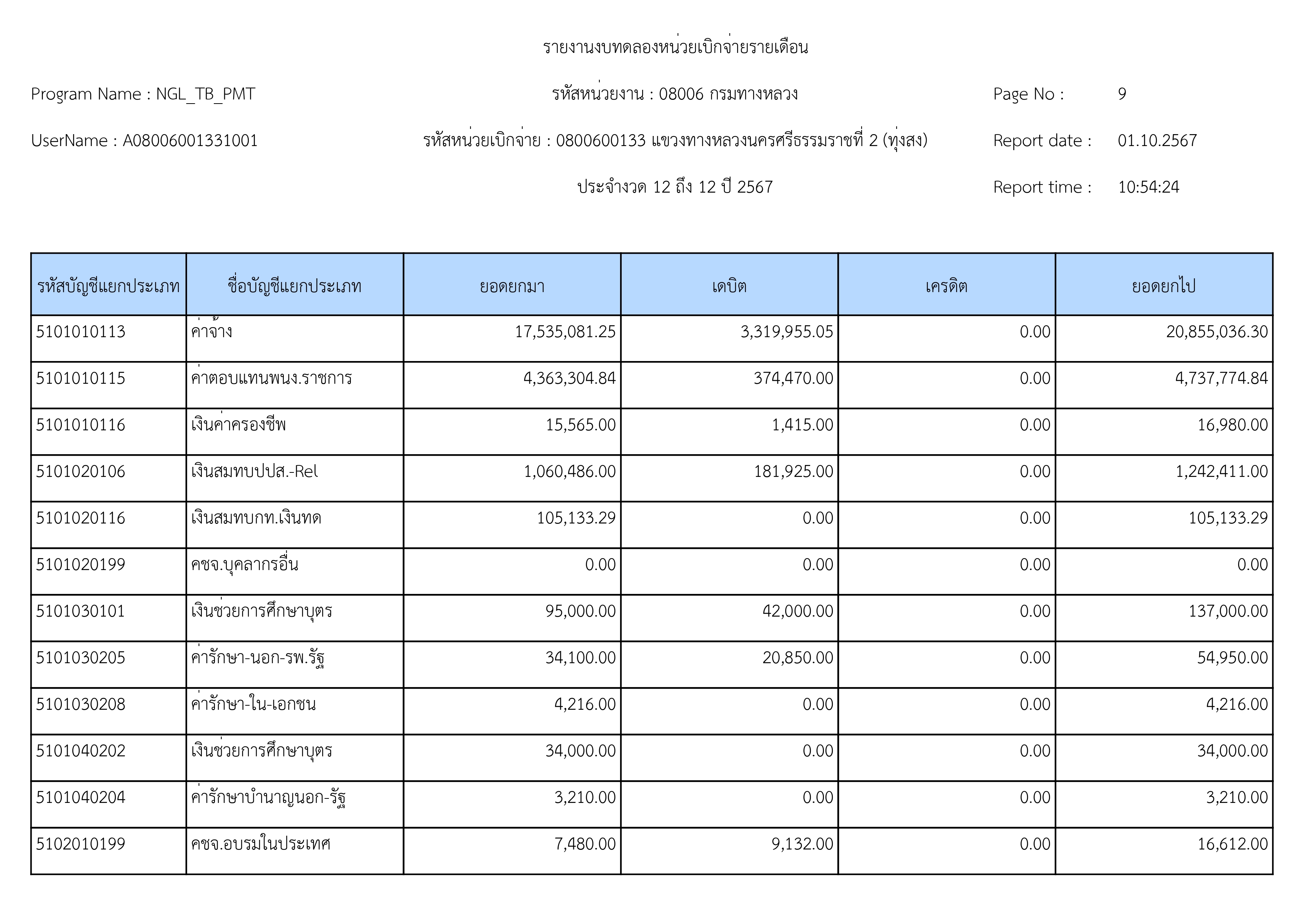 59 30/09/2567 รายงานงบทดลองหน่วยเบิกจ่ายรายเดือน ณ วันที่ 30 กันยายน 2567