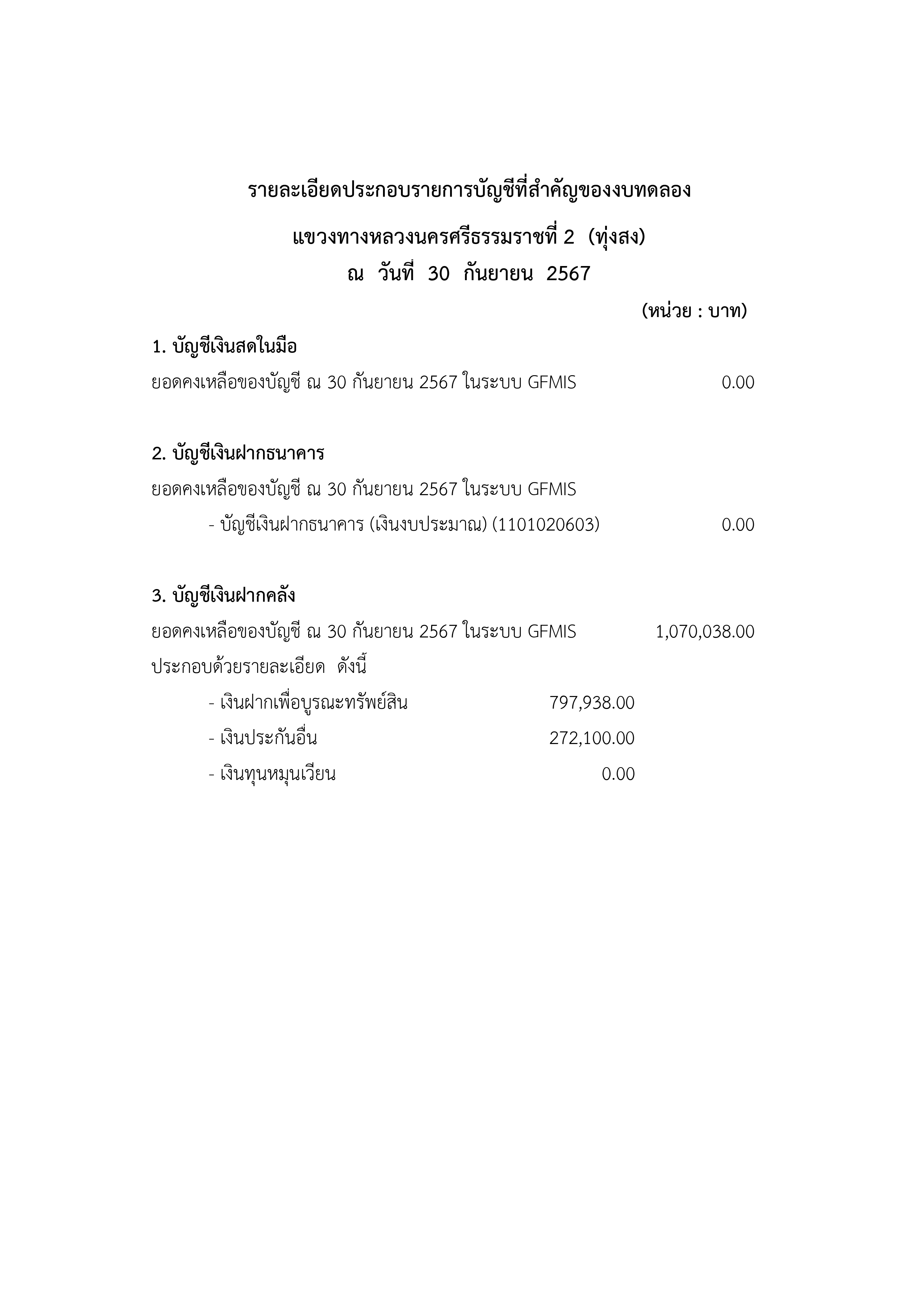 58 30/09/2567 รายละเอียดประกอบรายการบัญชีที่สำคัญของงบทดลอง ณ วันที่ 30 กันยายน 2567