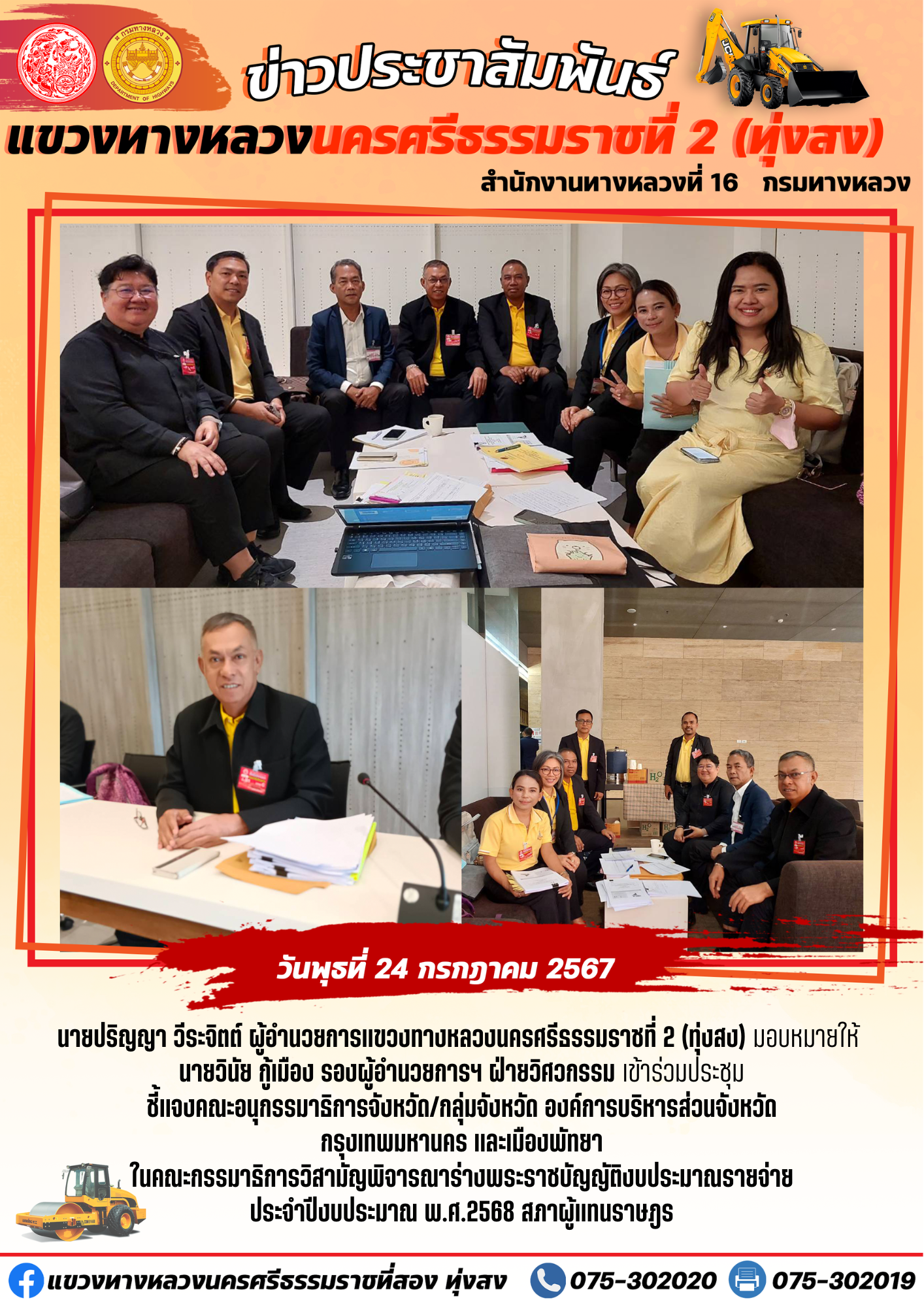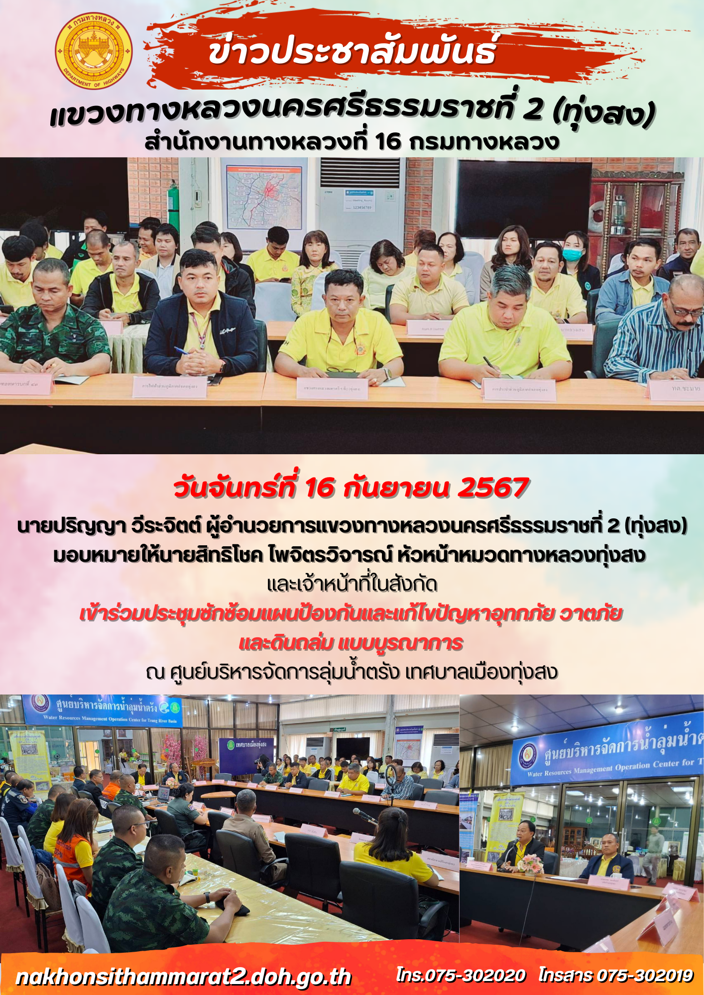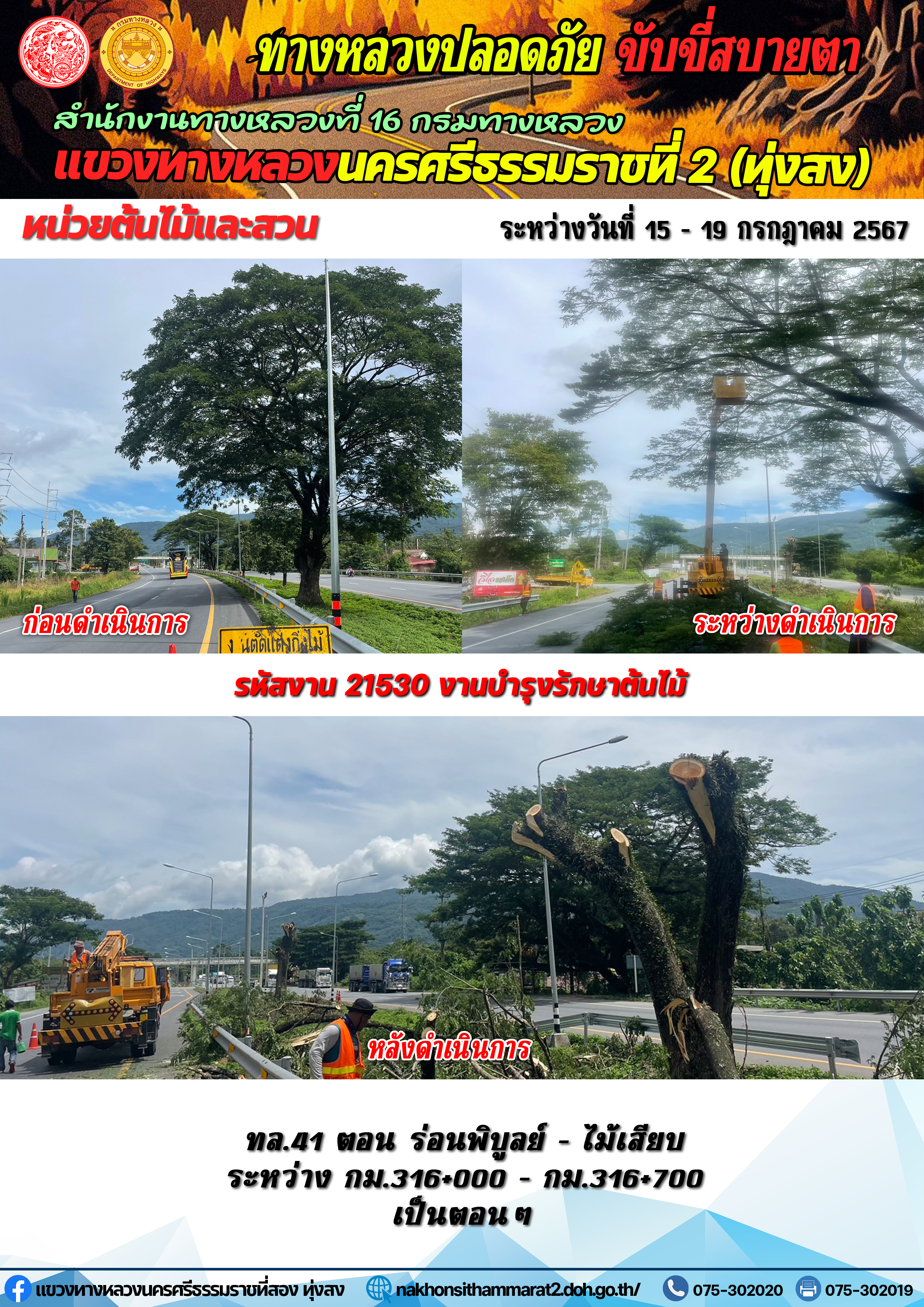 ผลการปฏิบัติงานของหมวดทางหลวงและหน่วยงานในสังกัด แขวงทางหลวงนครศรีธรรมราชที่ 2 (ทุ่งสง) ระหว่างวันที่ 15-19 กรกฎาคม พ.ศ.2567