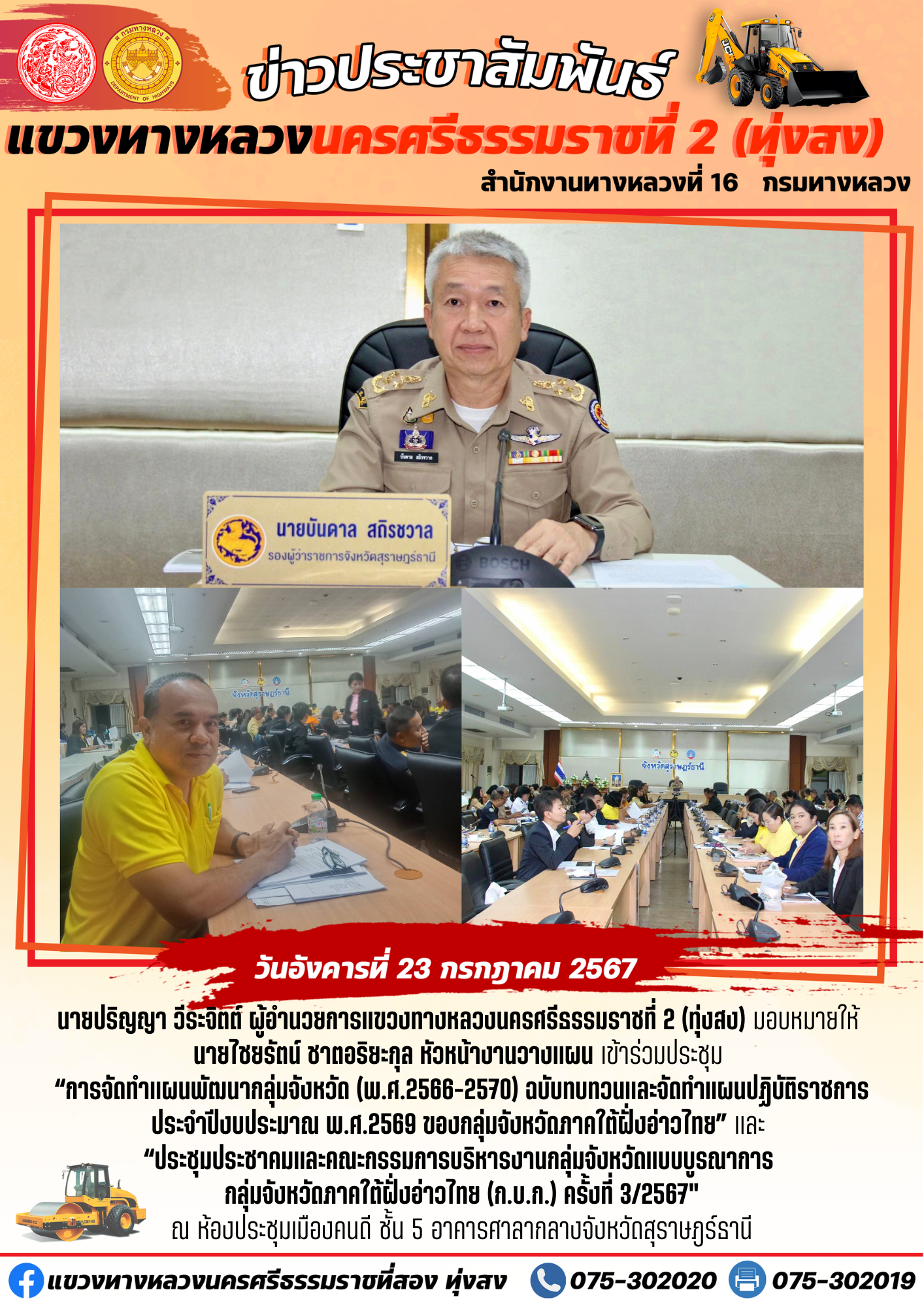 “การจัดทำแผนพัฒนากลุ่มจังหวัด (พ.ศ.2566-2570) ฉบับทบทวนและจัดทำแผนปฏิบัติราชการ ประจำปีงบประมาณ พ.ศ.2569 ของกลุ่มจังหวัดภาคใต้ฝั่งอ่าวไทย” และ “ประชุมประชาคมและคณะกรรมการบริหารงานกลุ่มจังหวัดแบบบูรณาการ กลุ่มจังหวัดภาคใต้ฝั่งอ่าวไทย (ก.บ.ก.) ครั้งที่ 3/2567"