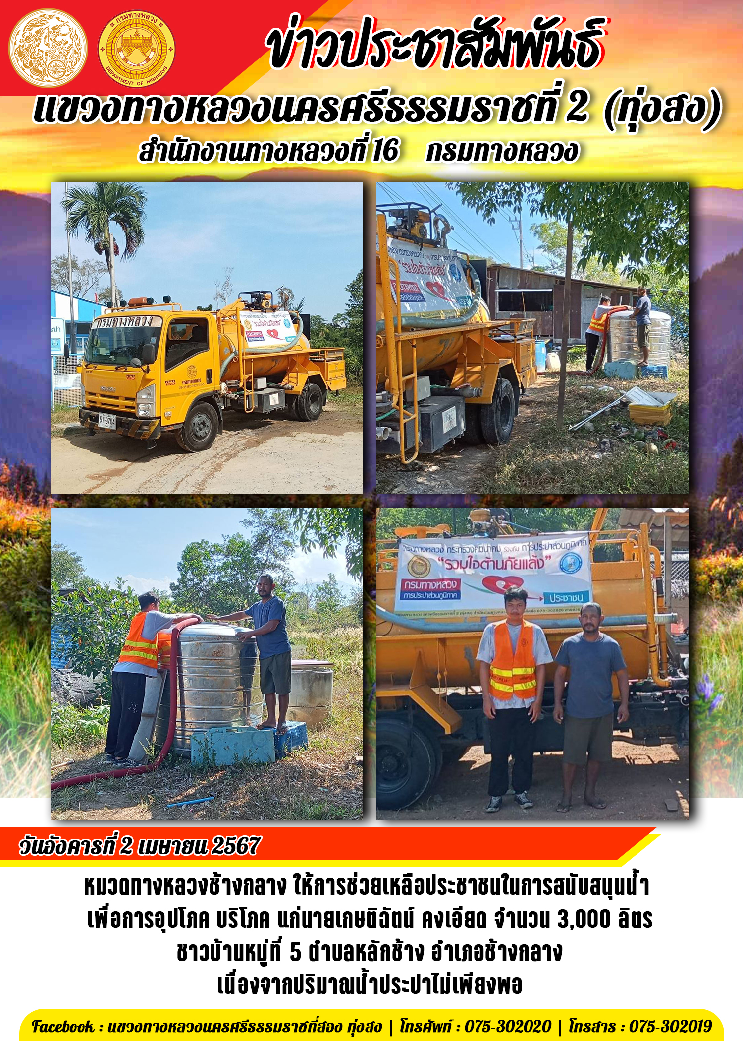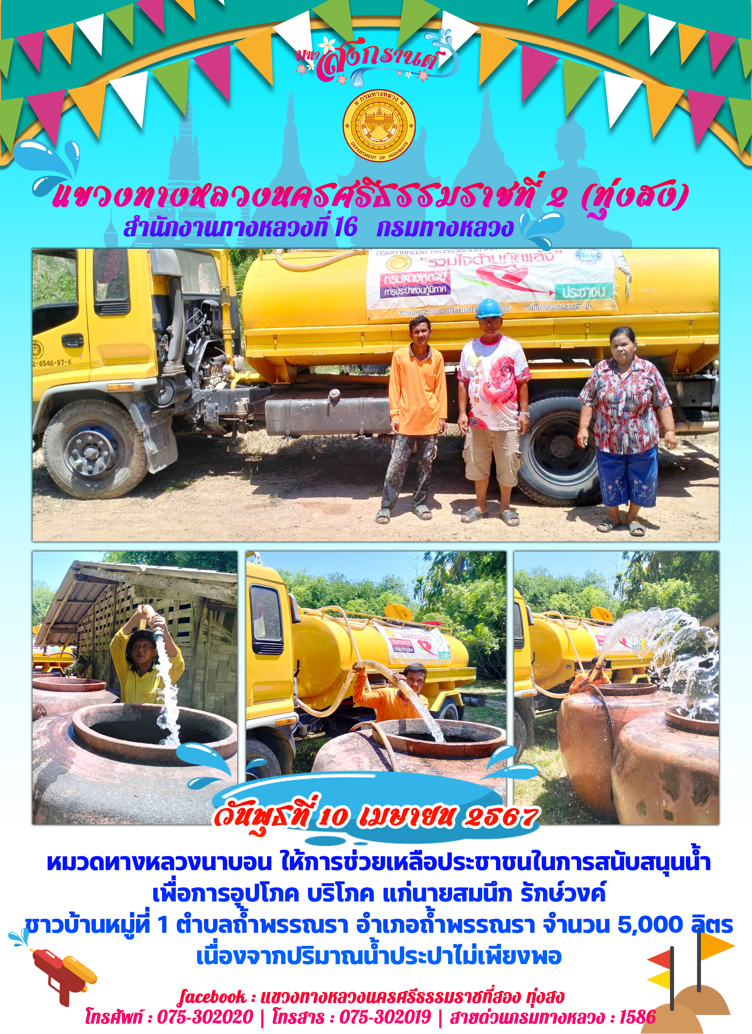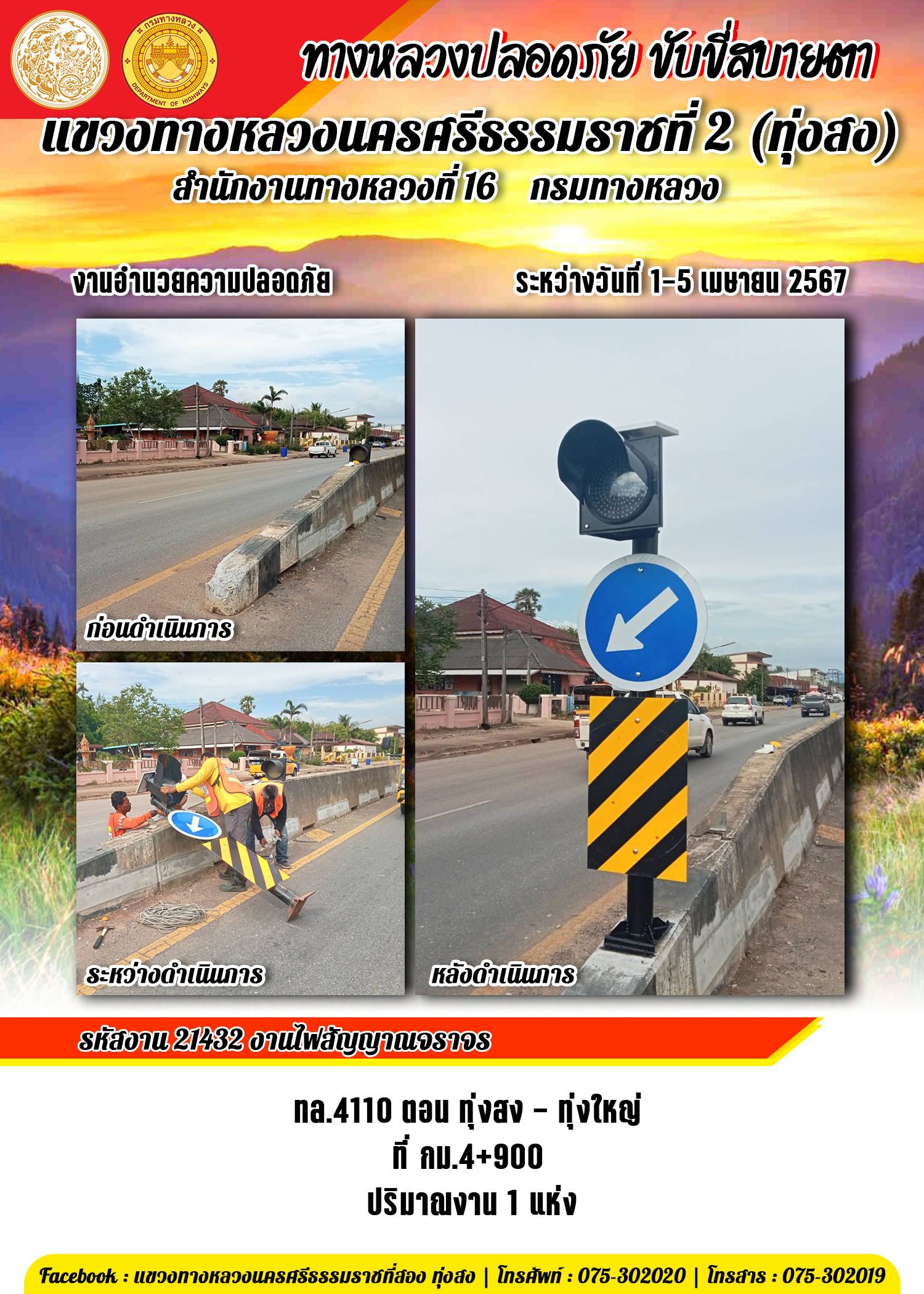 111 05/04/2567 ผลการปฏิบัติงานของหมวดทางหลวงและหน่วยงานในสังกัด แขวงทางหลวงนครศรีธรรมราชที่ 2 (ทุ่งสง) ระหว่างวันที่ 1-5 เมษายน พ.ศ.2567