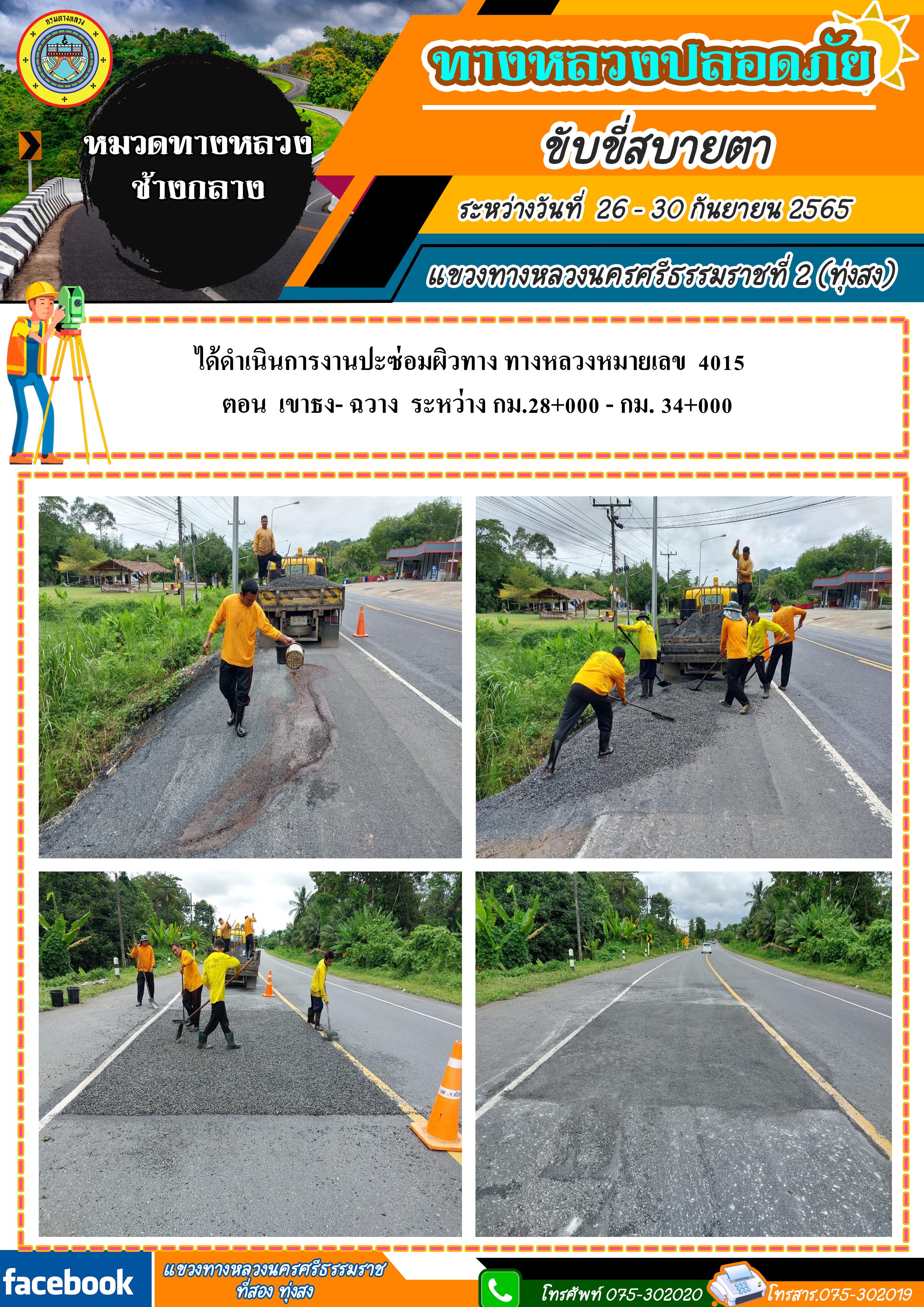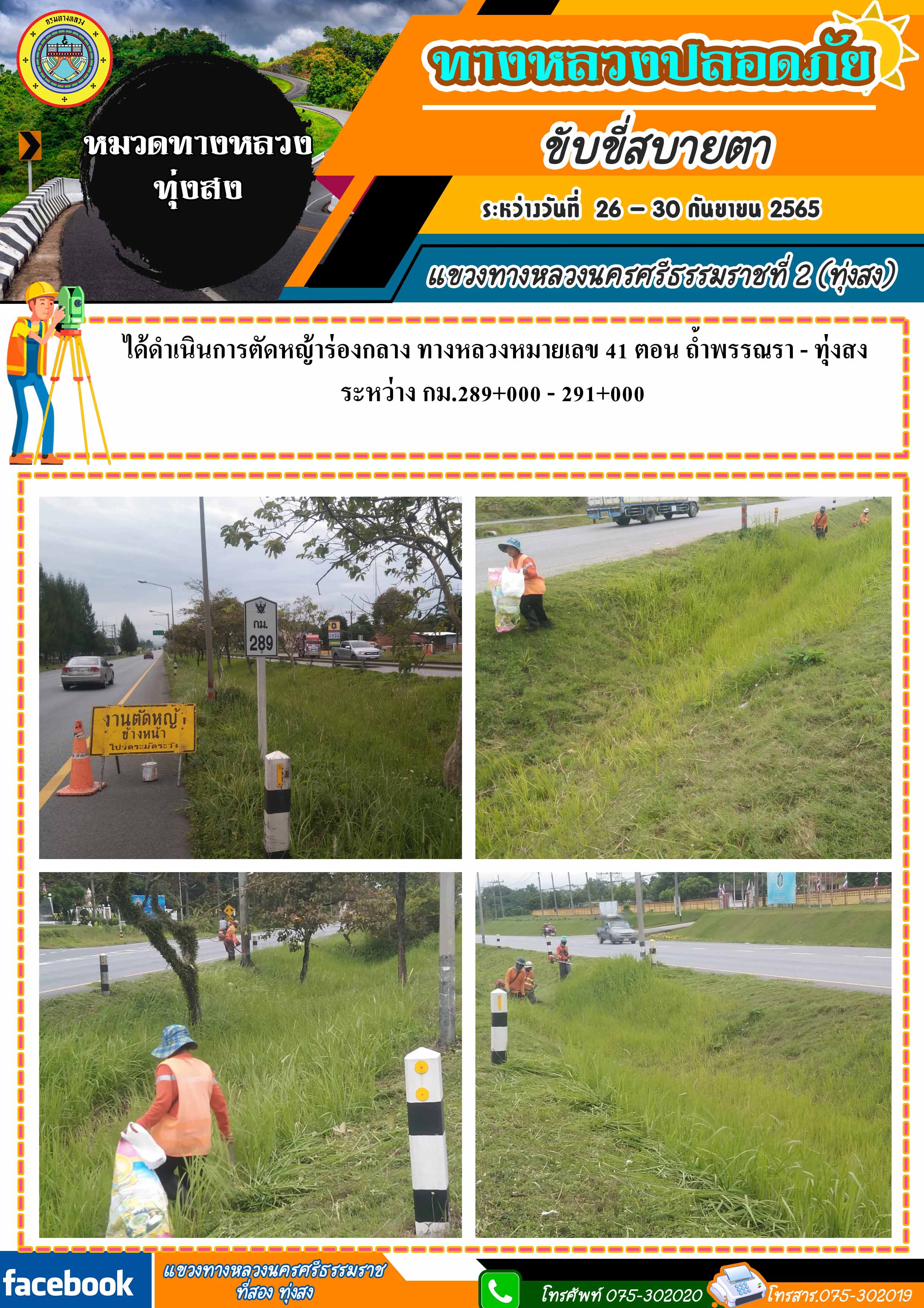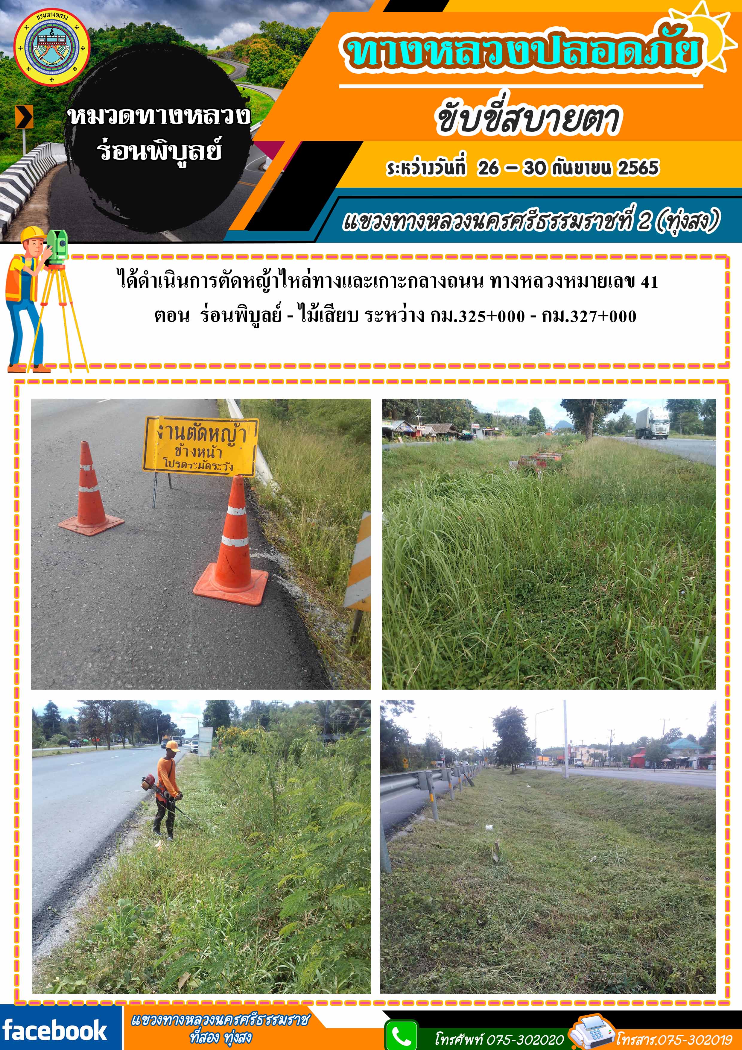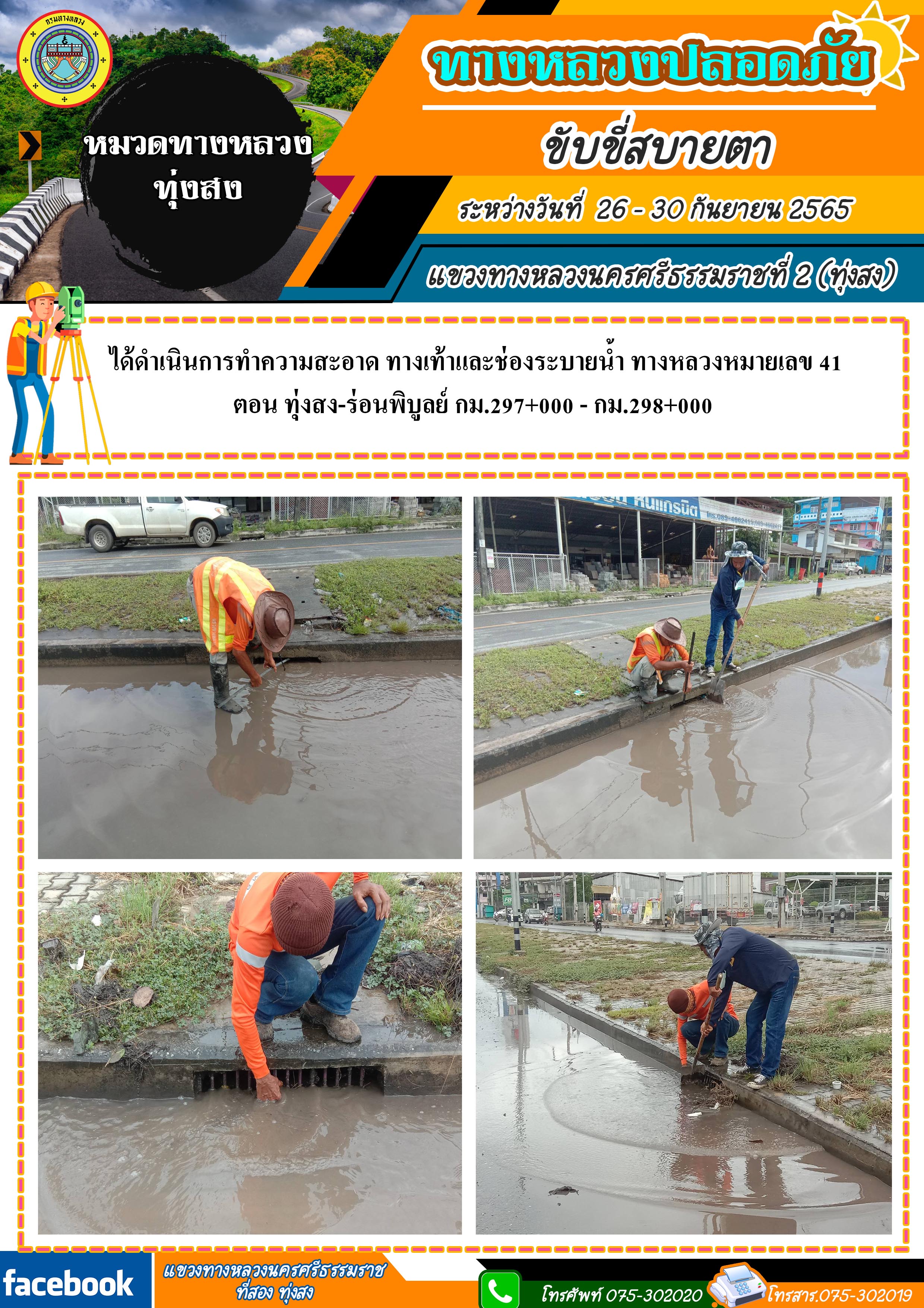 ผลการปฏิบัติงานประจำสัปดาห์ของแขวงทางหลวงนครศรีธรรมราชที่ 2 (ทุ่งสง) ระหว่างวันที่ 26 - 30 กันยายน 2565 โดยหมวดทางหลวงและหน่วยงานในสังกัด