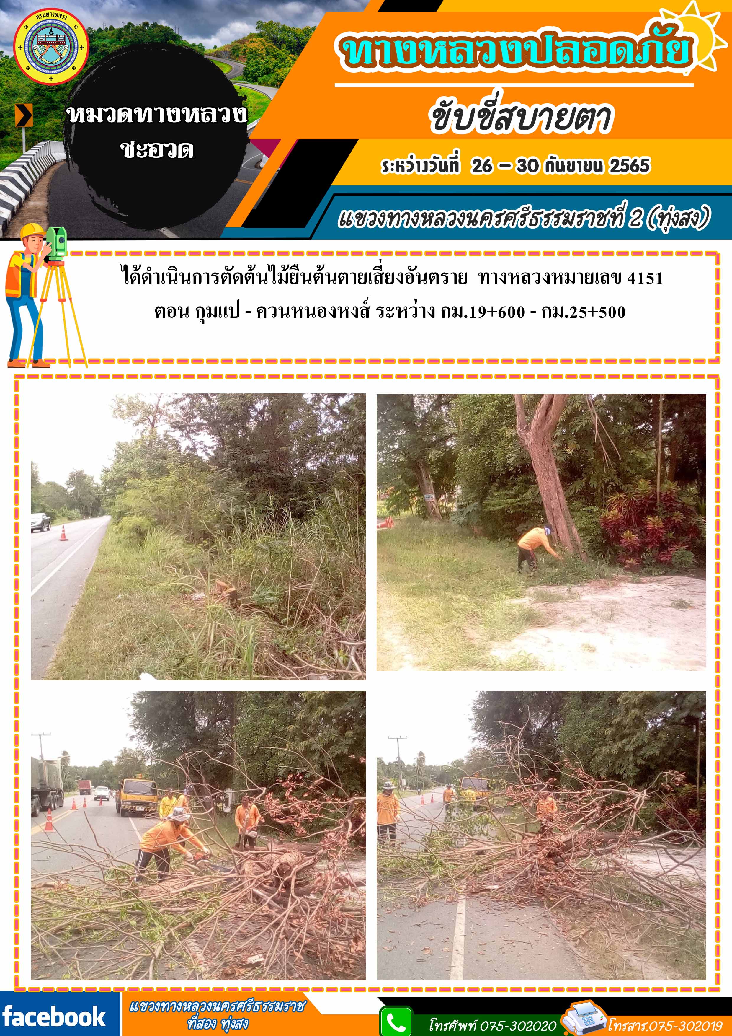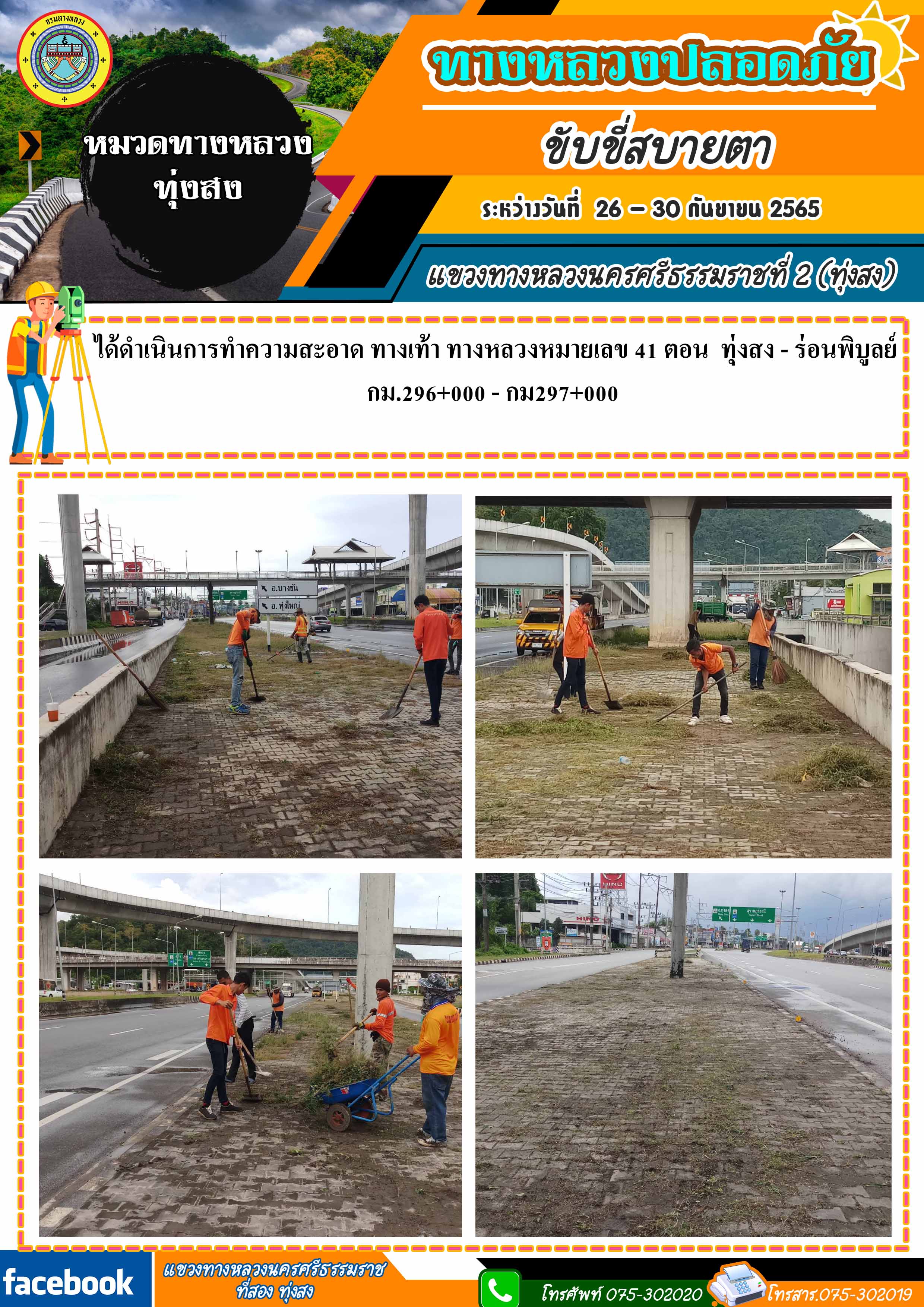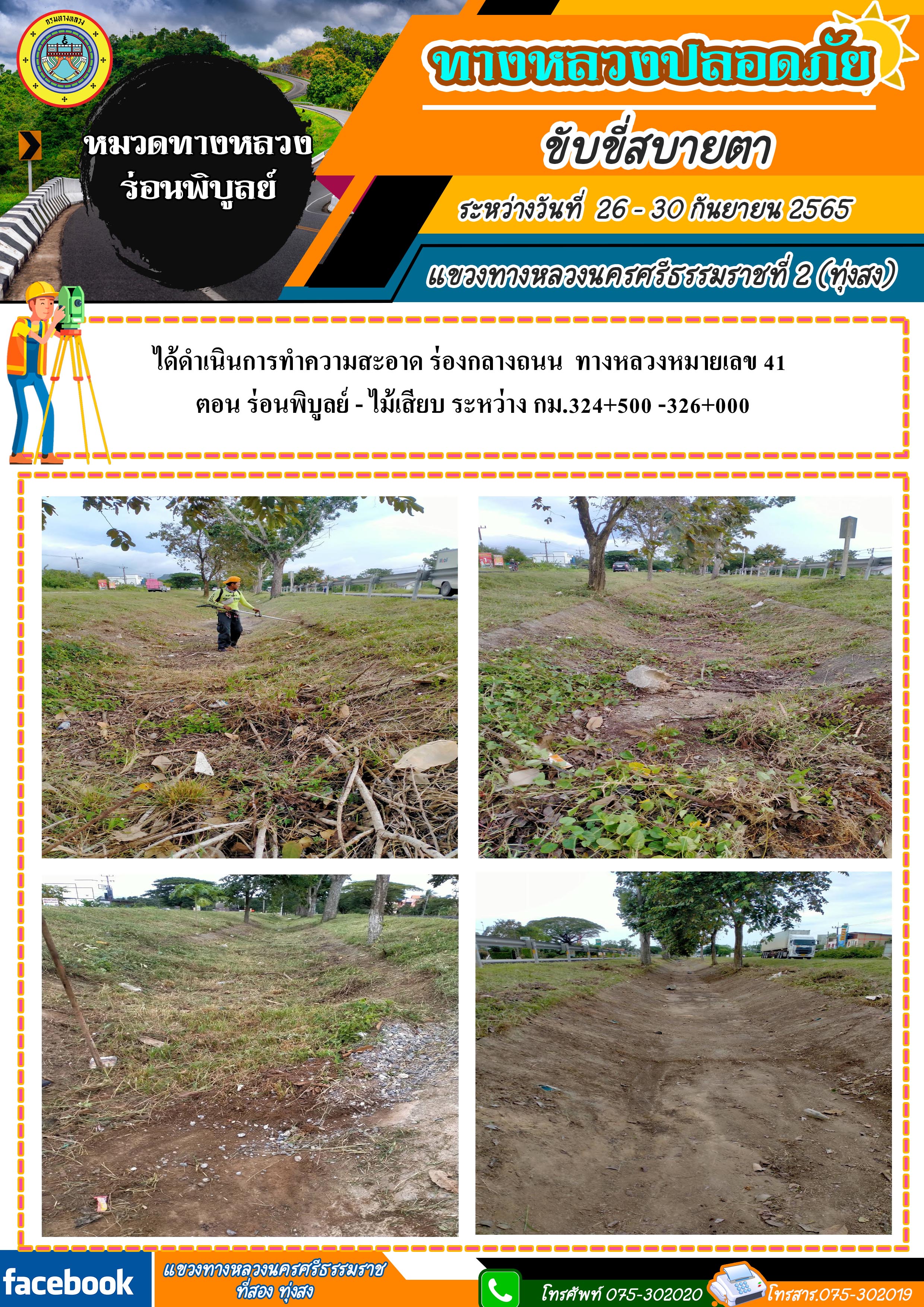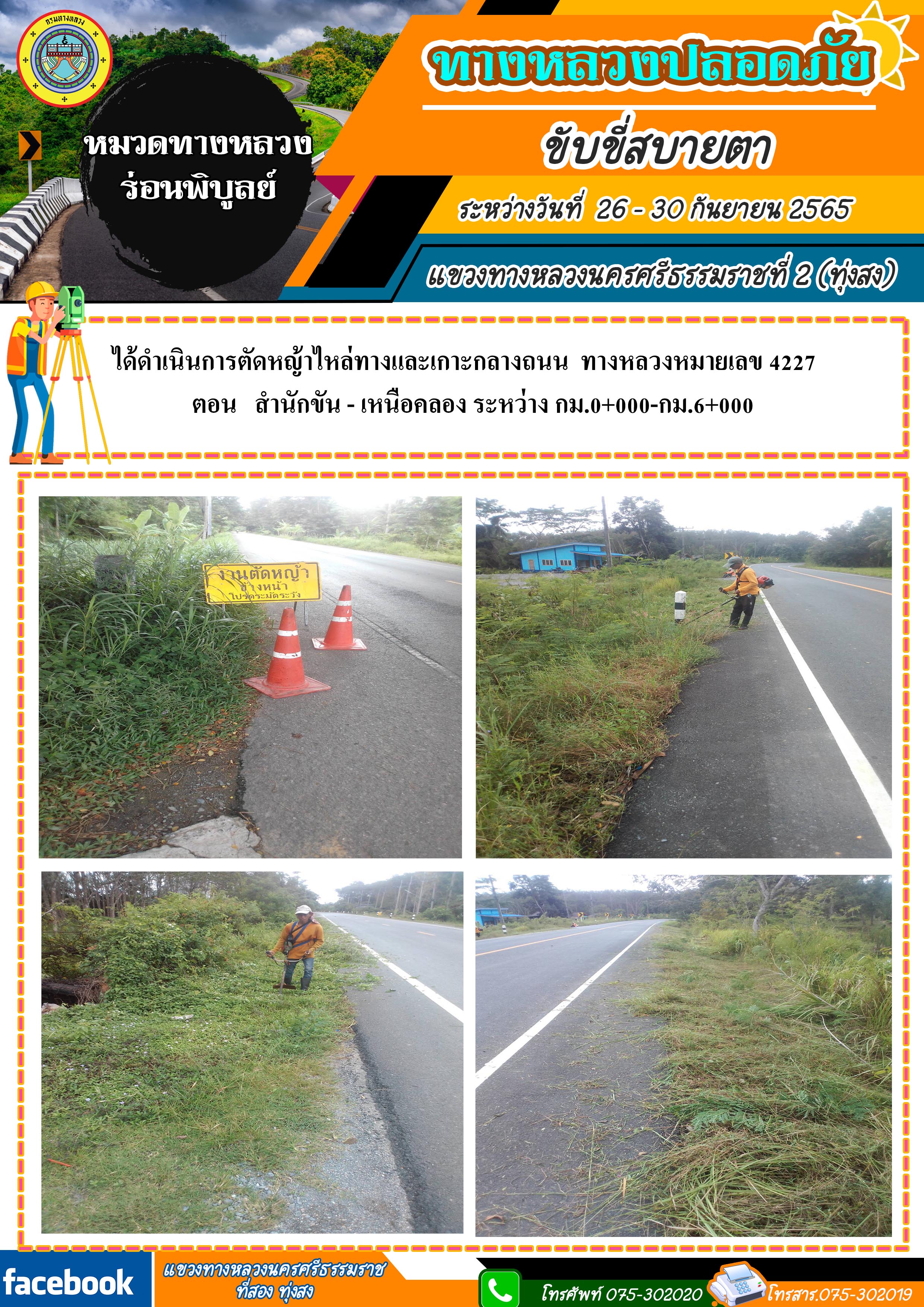 ผลการปฏิบัติงานประจำสัปดาห์ของแขวงทางหลวงนครศรีธรรมราชที่ 2 (ทุ่งสง) ระหว่างวันที่ 26 - 30 กันยายน 2565 โดยหมวดทางหลวงและหน่วยงานในสังกัด