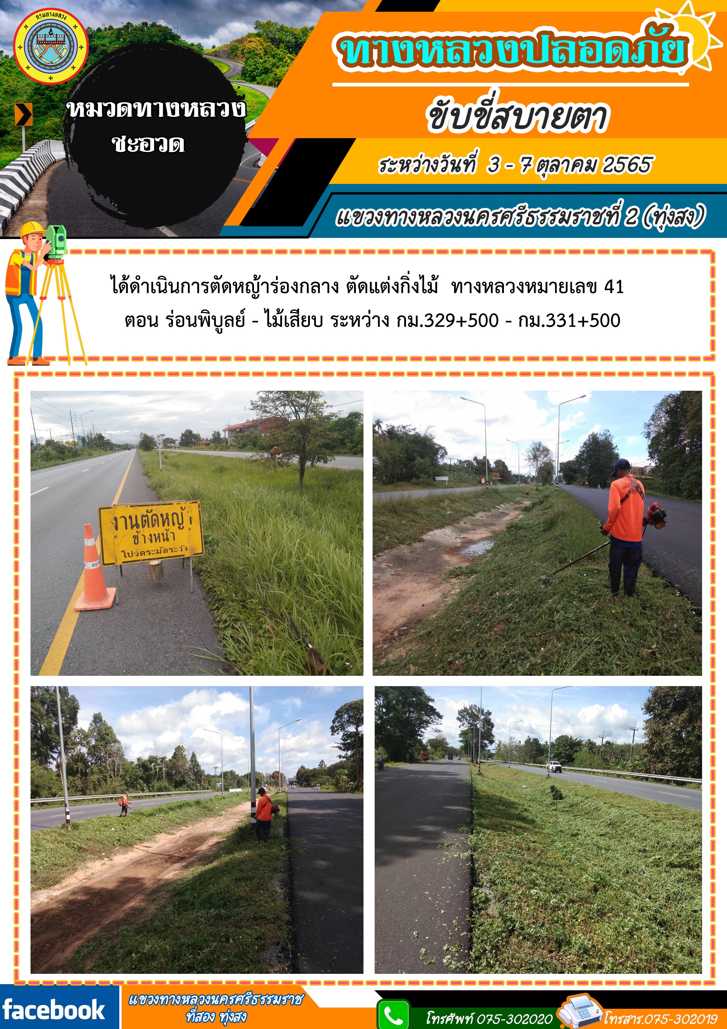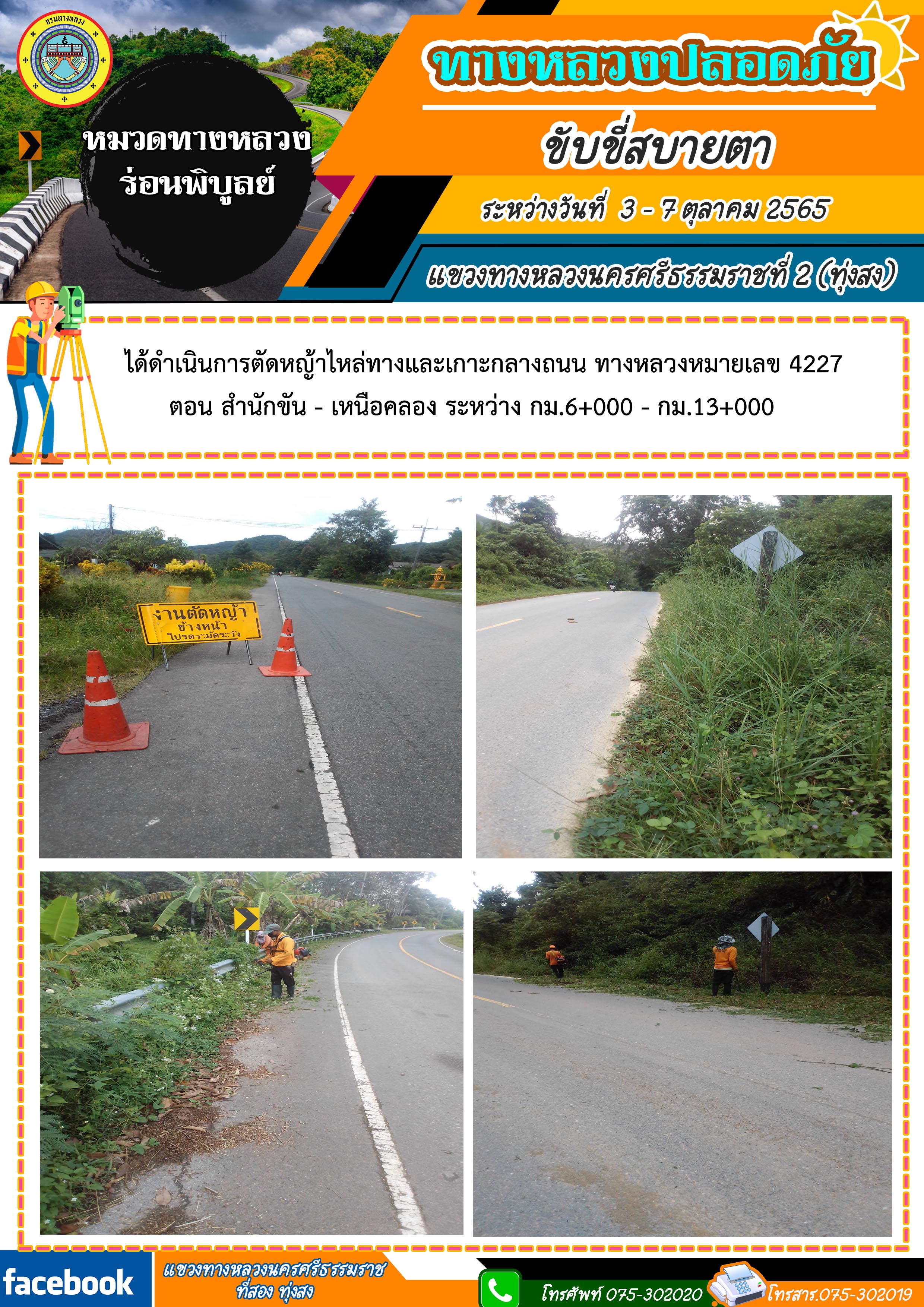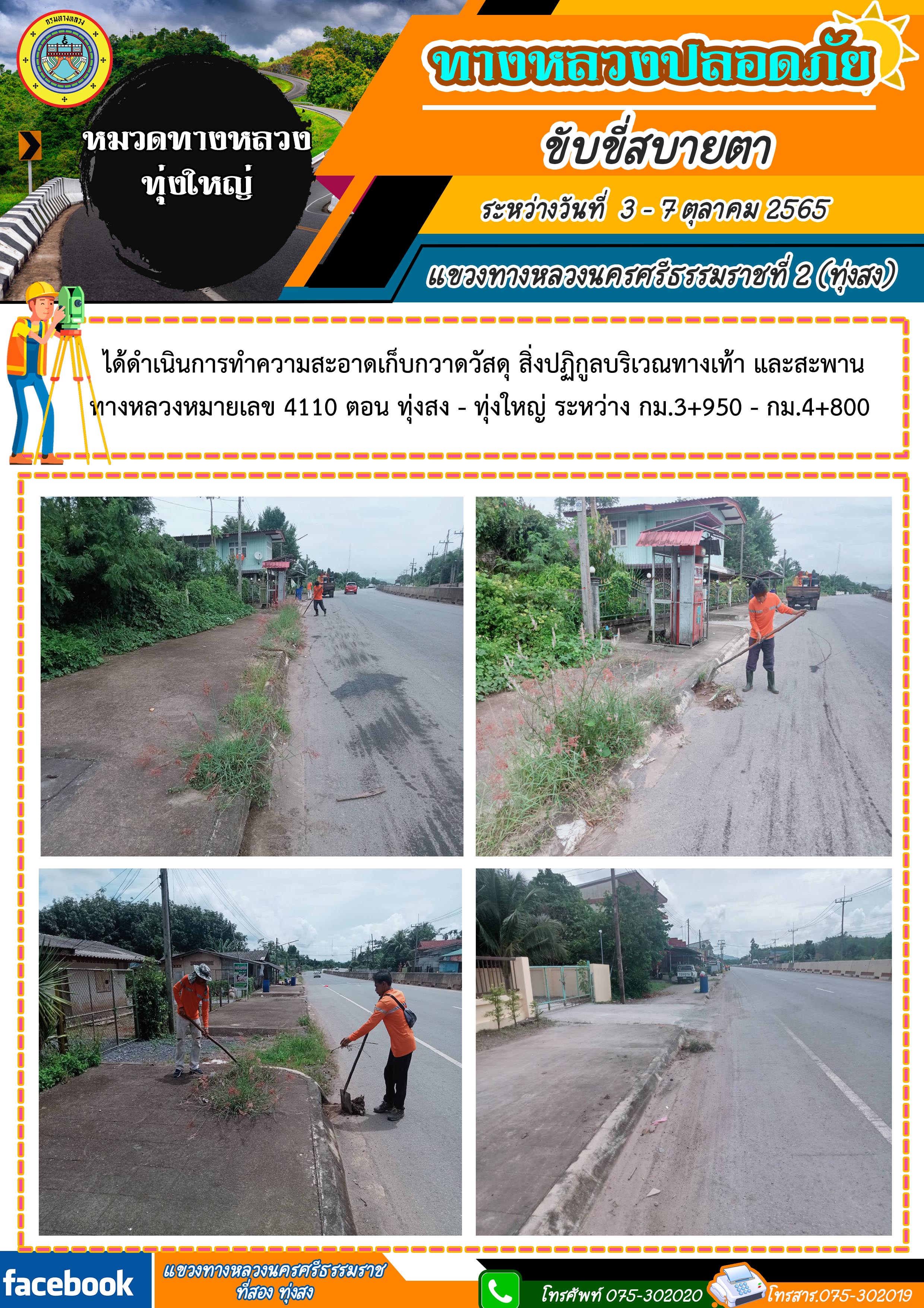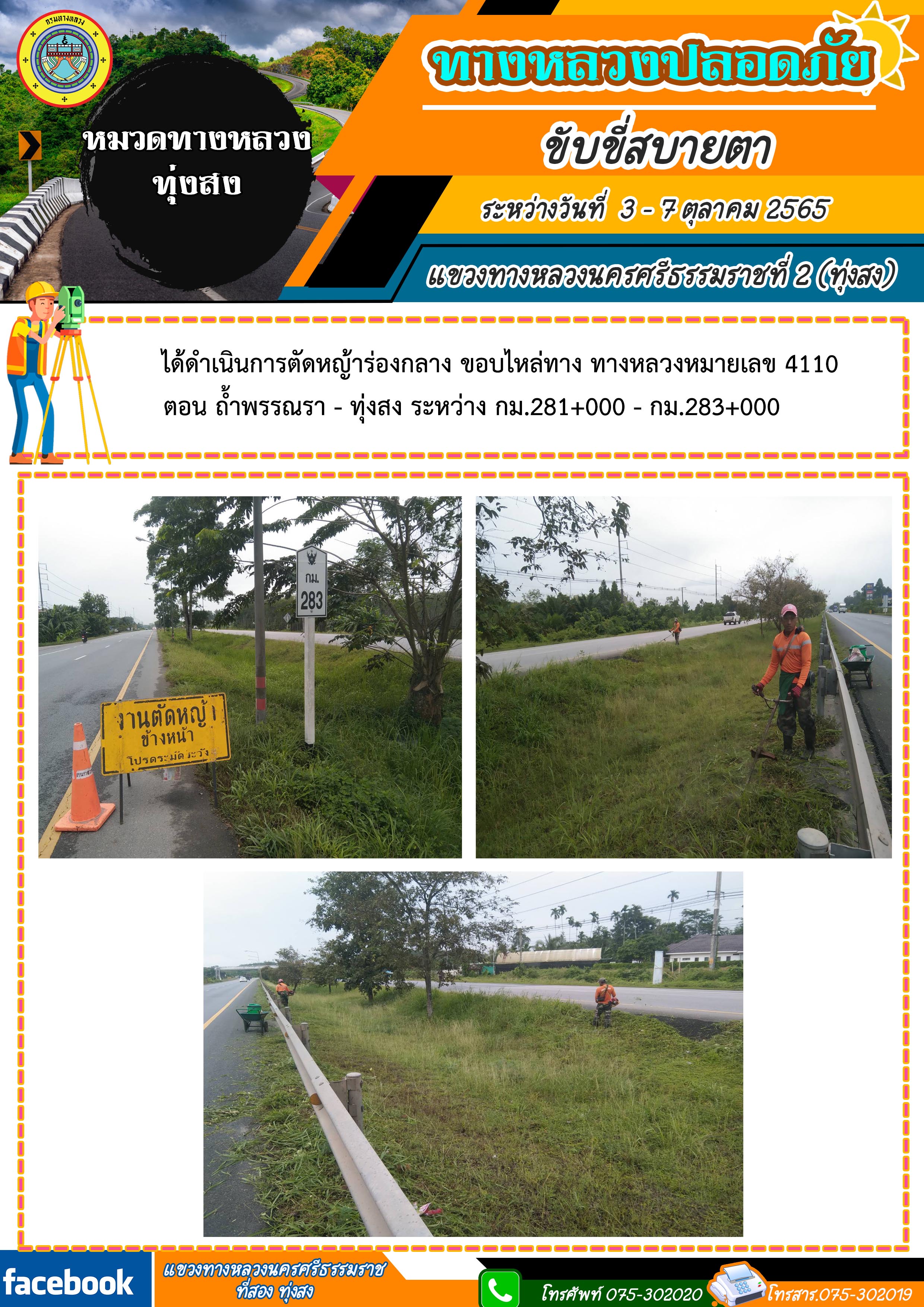 ผลการปฏิบัติงานประจำสัปดาห์ของแขวงทางหลวงนครศรีธรรมราชที่ 2 (ทุ่งสง) ระหว่างวันที่ 3 - 7 ตุลาคม 2565 โดยหมวดทางหลวงและหน่วยงานในสังกัด