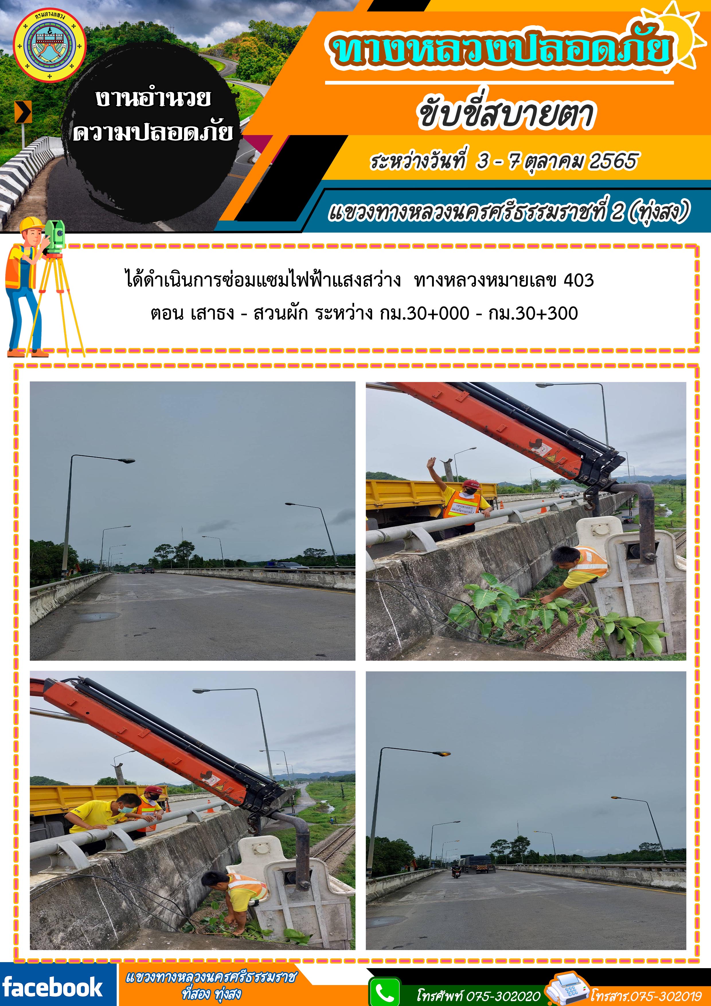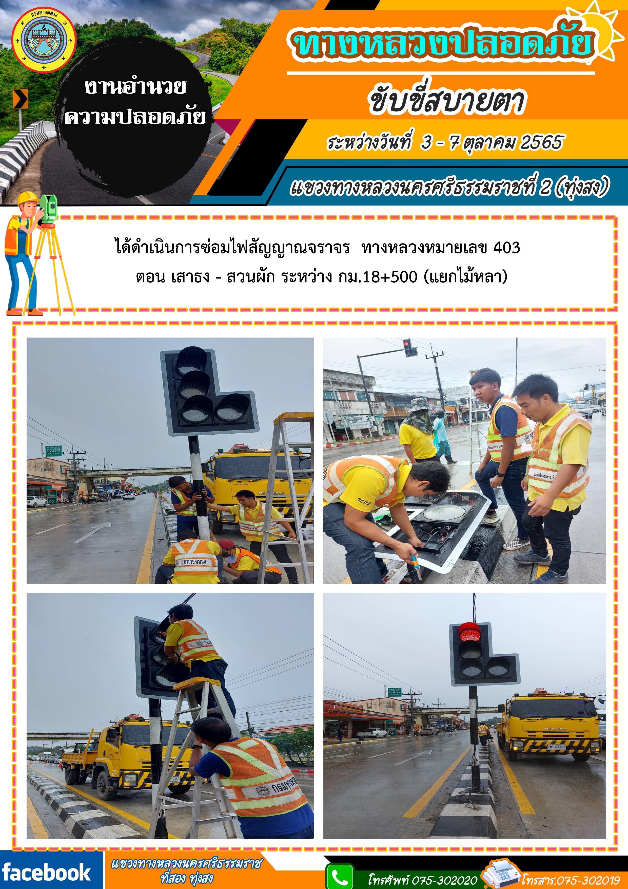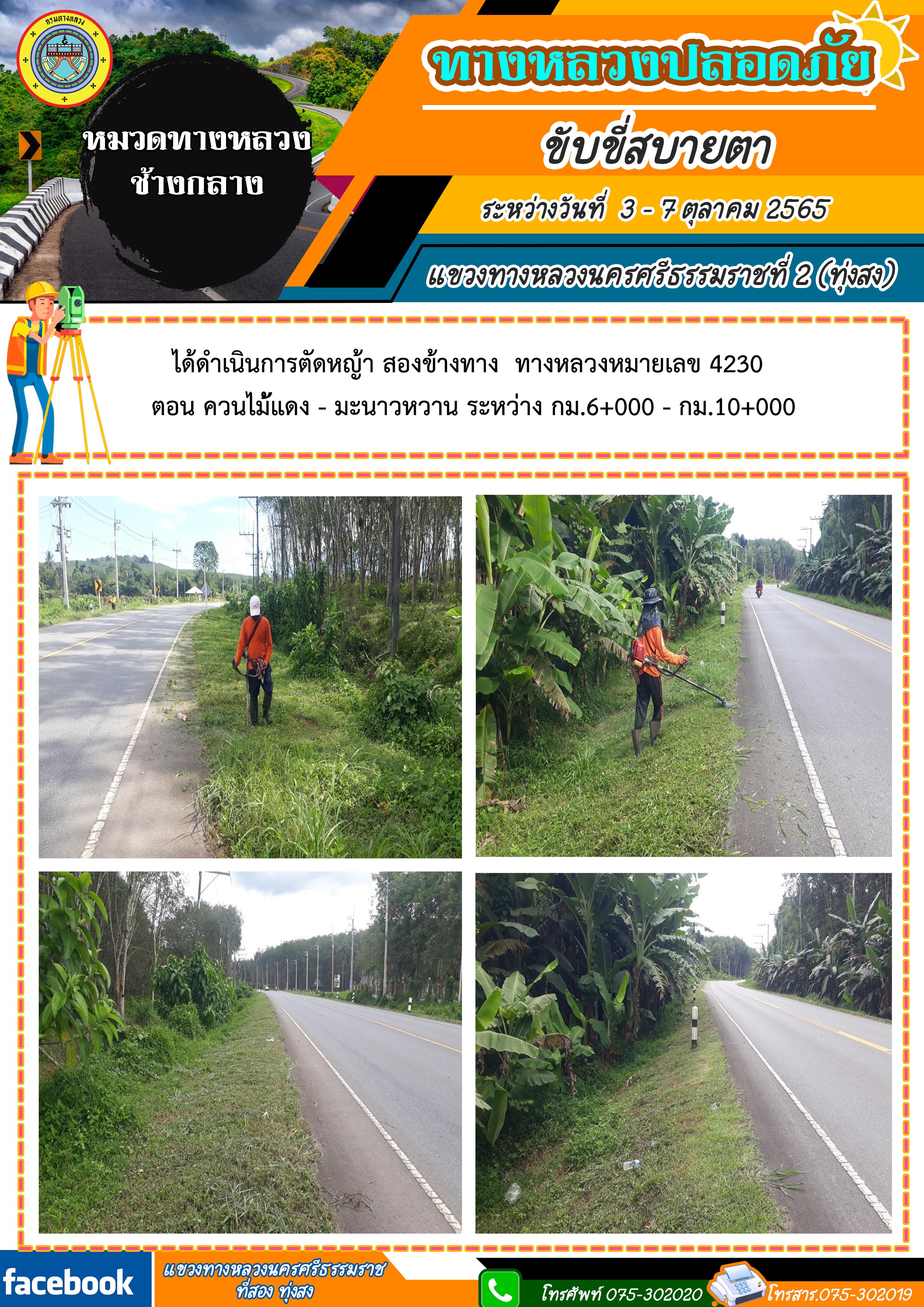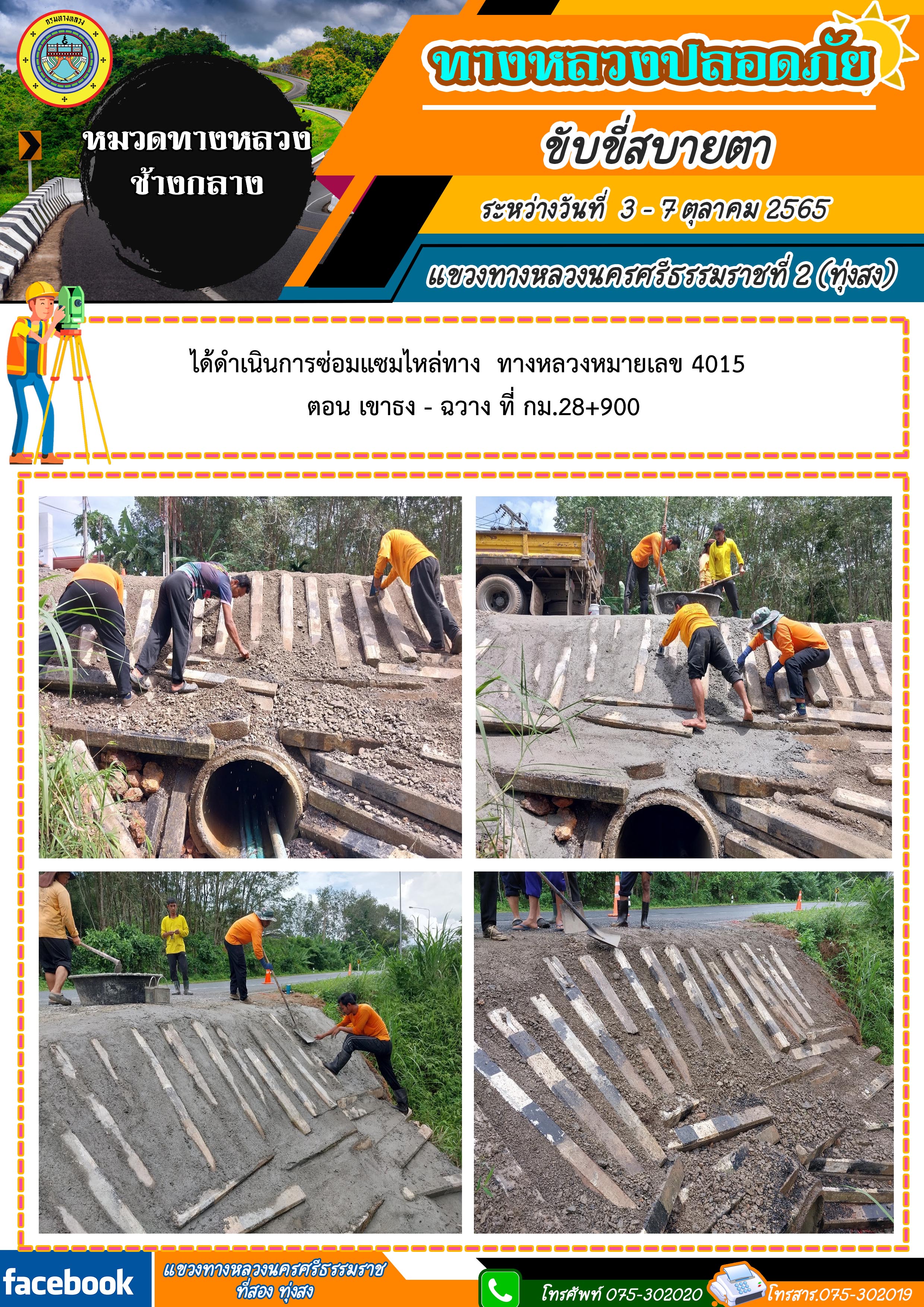 ผลการปฏิบัติงานประจำสัปดาห์ของแขวงทางหลวงนครศรีธรรมราชที่ 2 (ทุ่งสง) ระหว่างวันที่ 3 - 7 ตุลาคม 2565 โดยหมวดทางหลวงและหน่วยงานในสังกัด