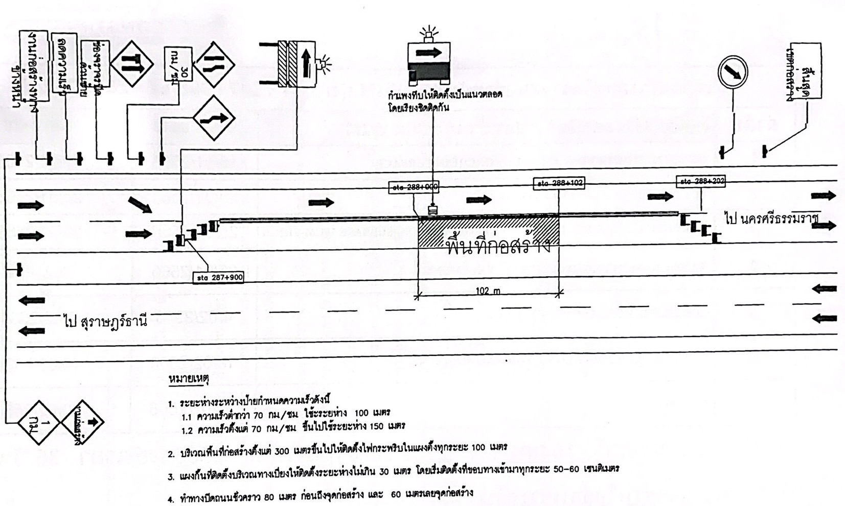 1. ปิดการจราจร ตั้งแต่วันที่ 16 มกราคม 2566 - วันที่ 20 กุมภาพันธ์ 2566 เป็นระยะเวลา 36 วัน โดยจะดำเนินการปิดเลนขวา + ไหล่ขวาทาง ระหว่าง กม.287+900 LT - กม.288+202 LT กว้าง 4 เมตร