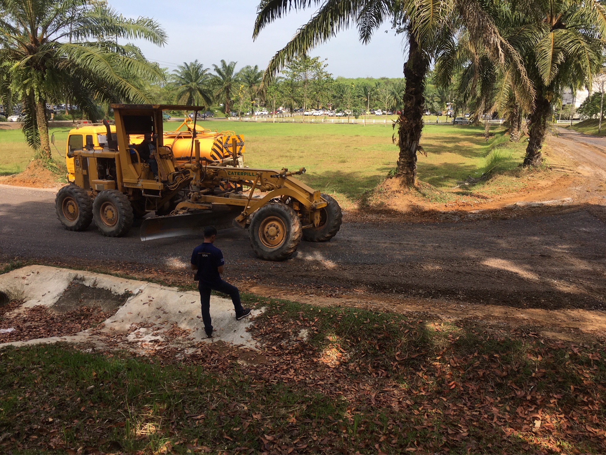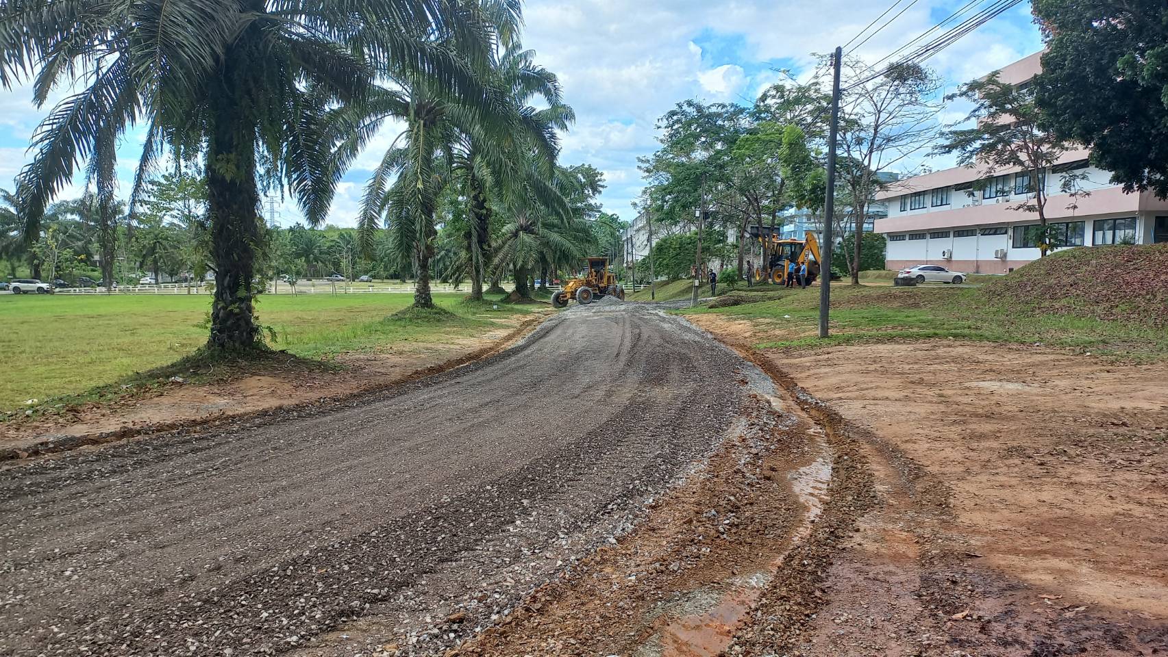 สนับสนุนวัสดุ เครื่องจักร ในการซ่อมปรับปรุงถนนลูกรังเดิมภายใน ร.พ.ทุ่งสง