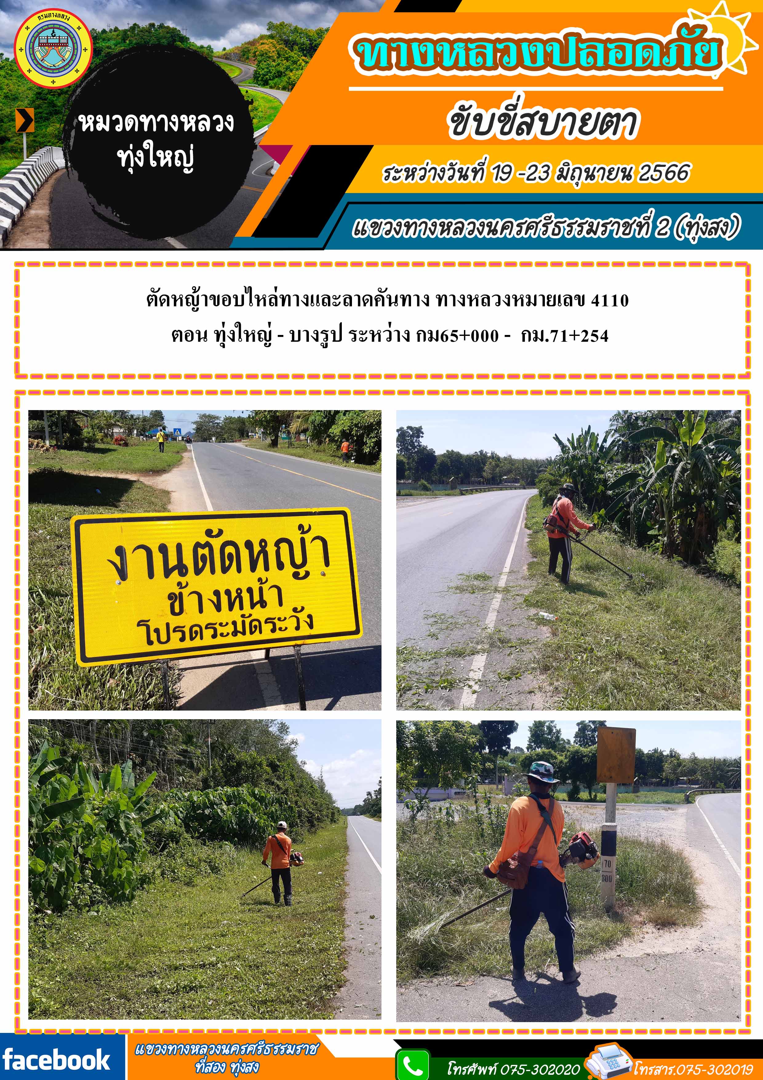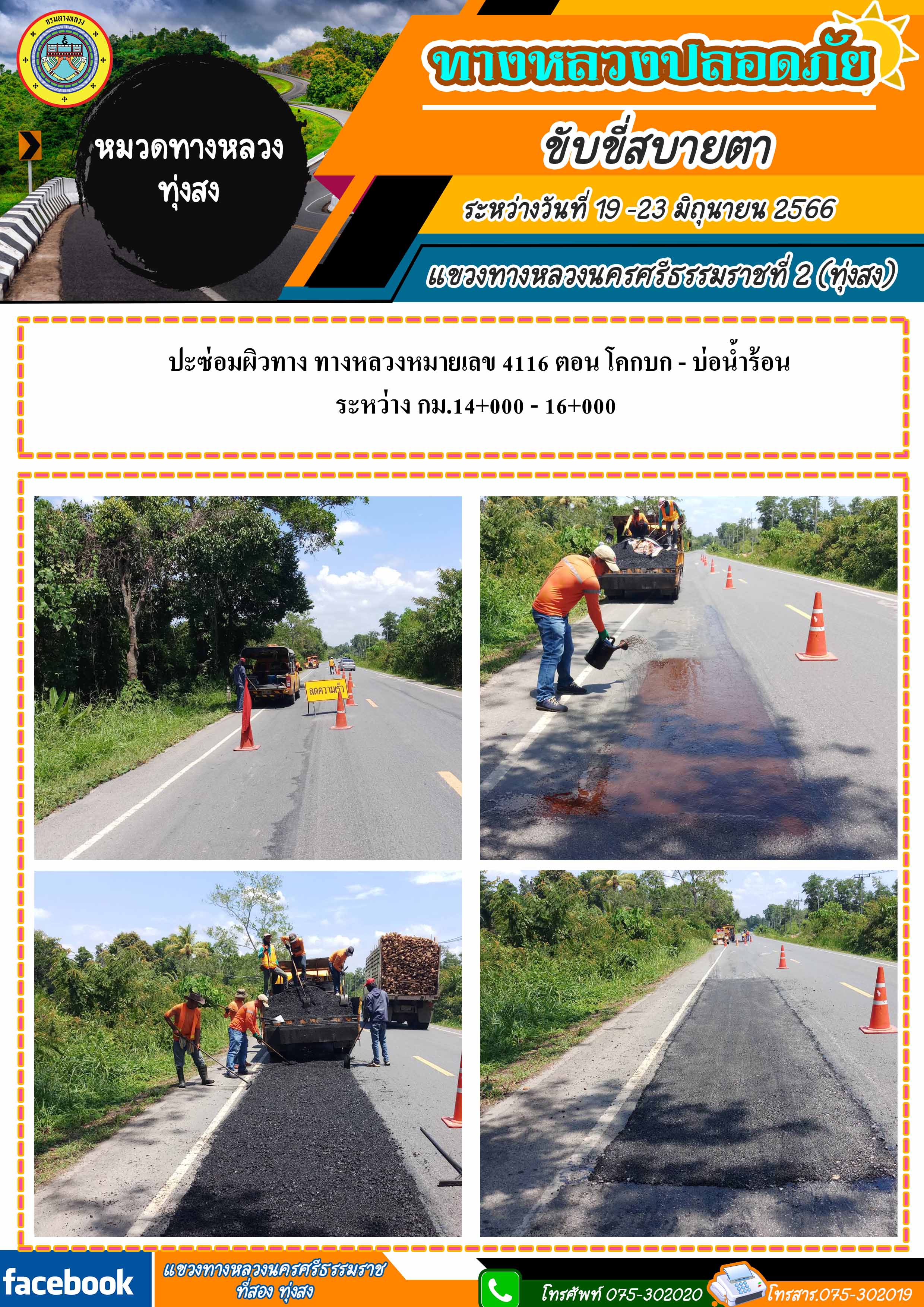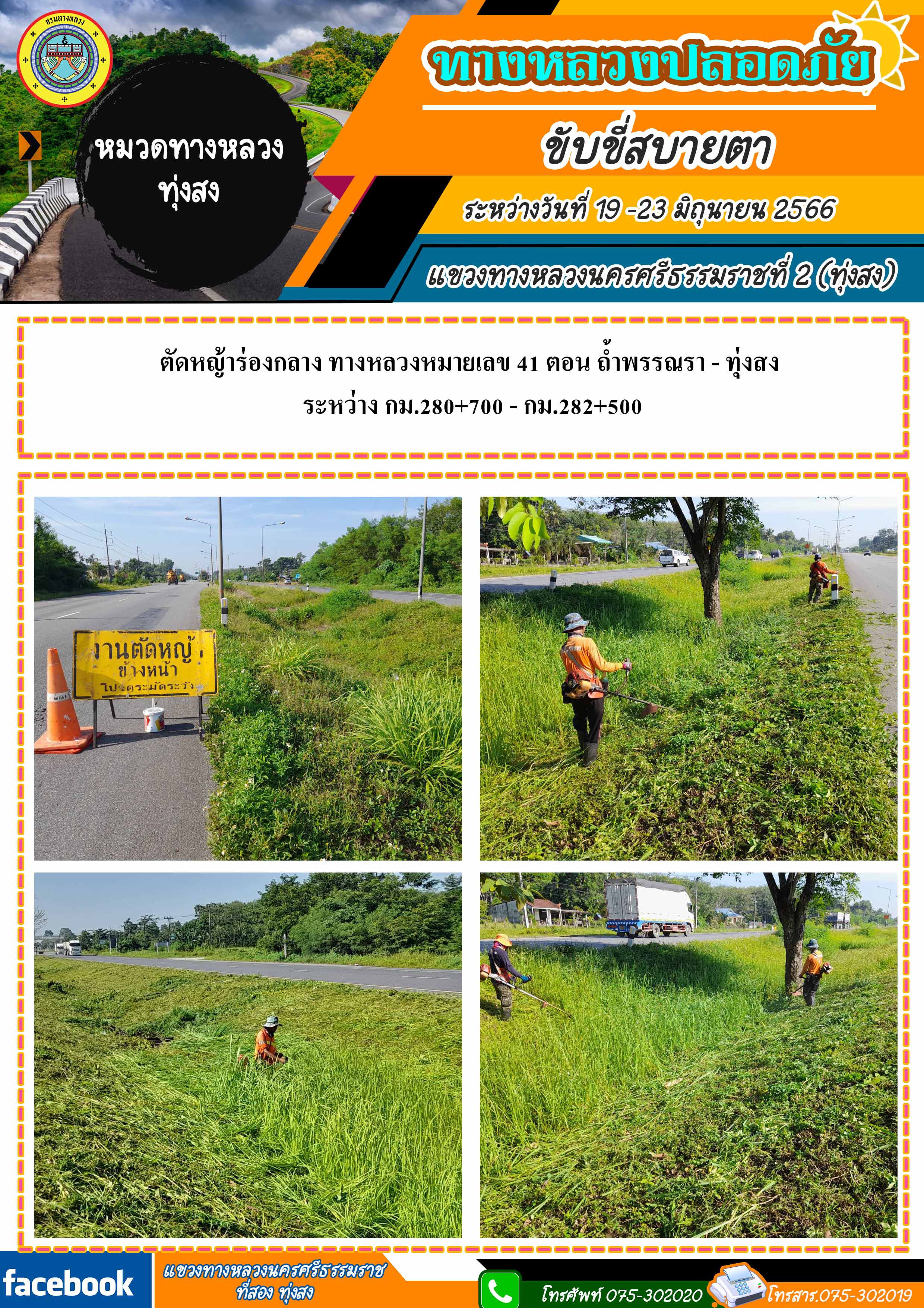 ทางหลวงปลอดภัย ขับขี่สบายตา ผลการปฏิบัติงานประจำสัปดาห์ของแขวงทางหลวงนครศรีธรรมราชที่ 2 (ทุ่งสง) ระหว่างวันที่ 19 - 23 มิถุนายน 2566 โดยหมวดทางหลวงและหน่วยงานในสังกัด