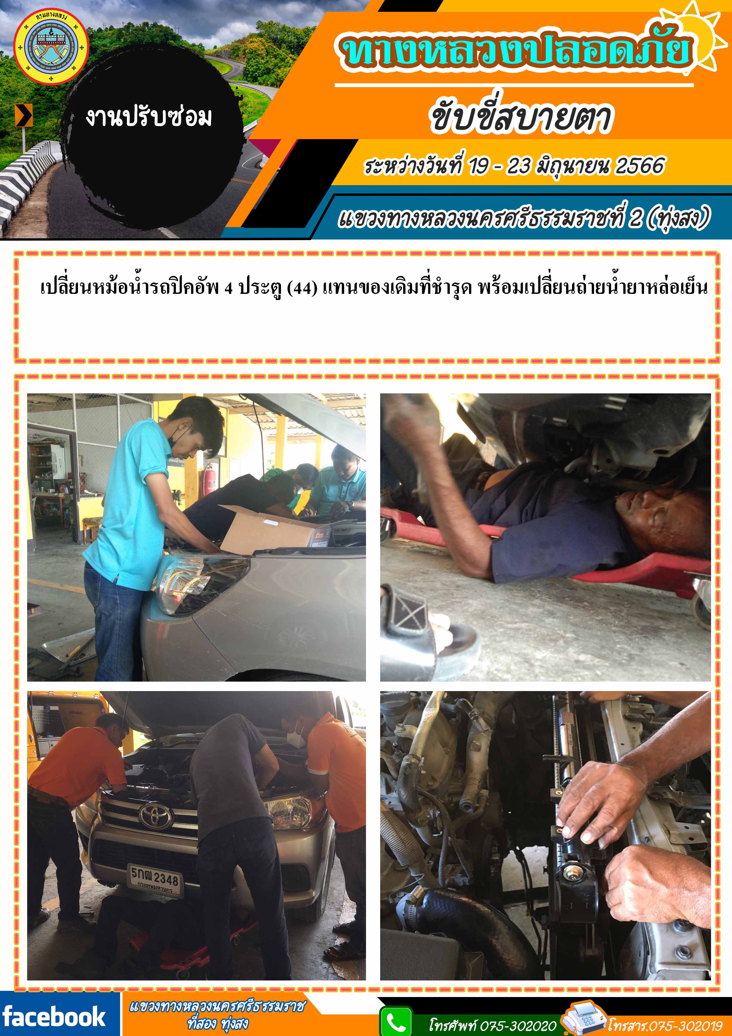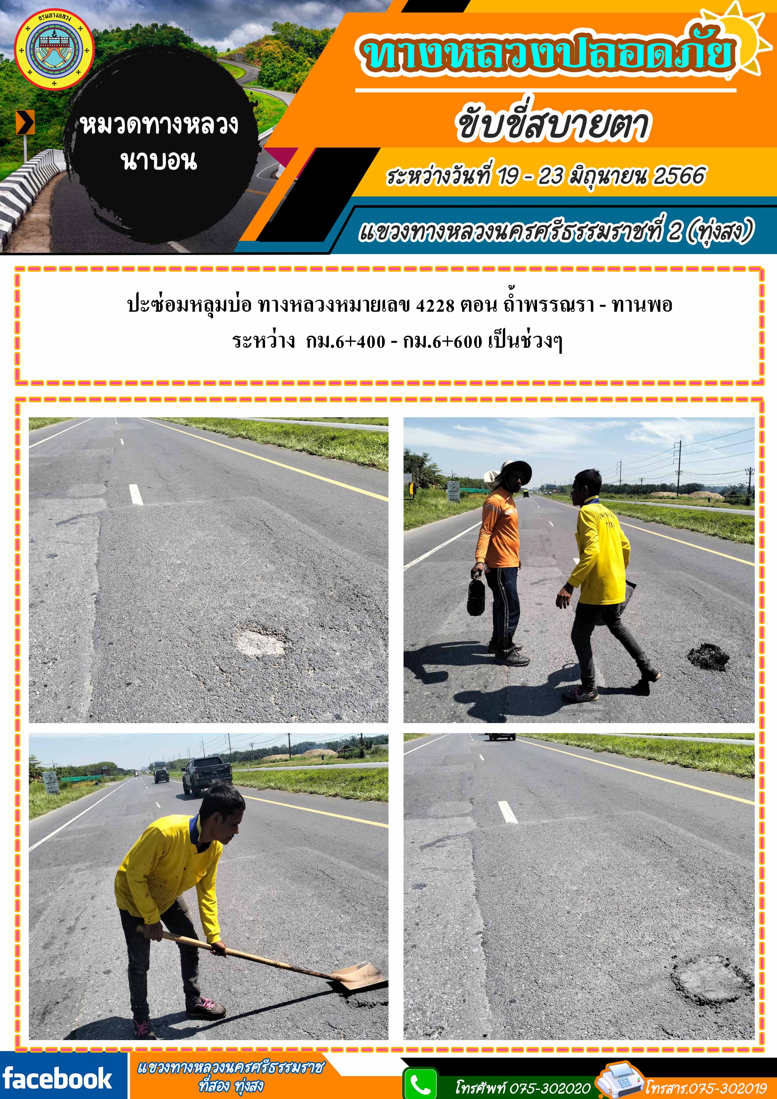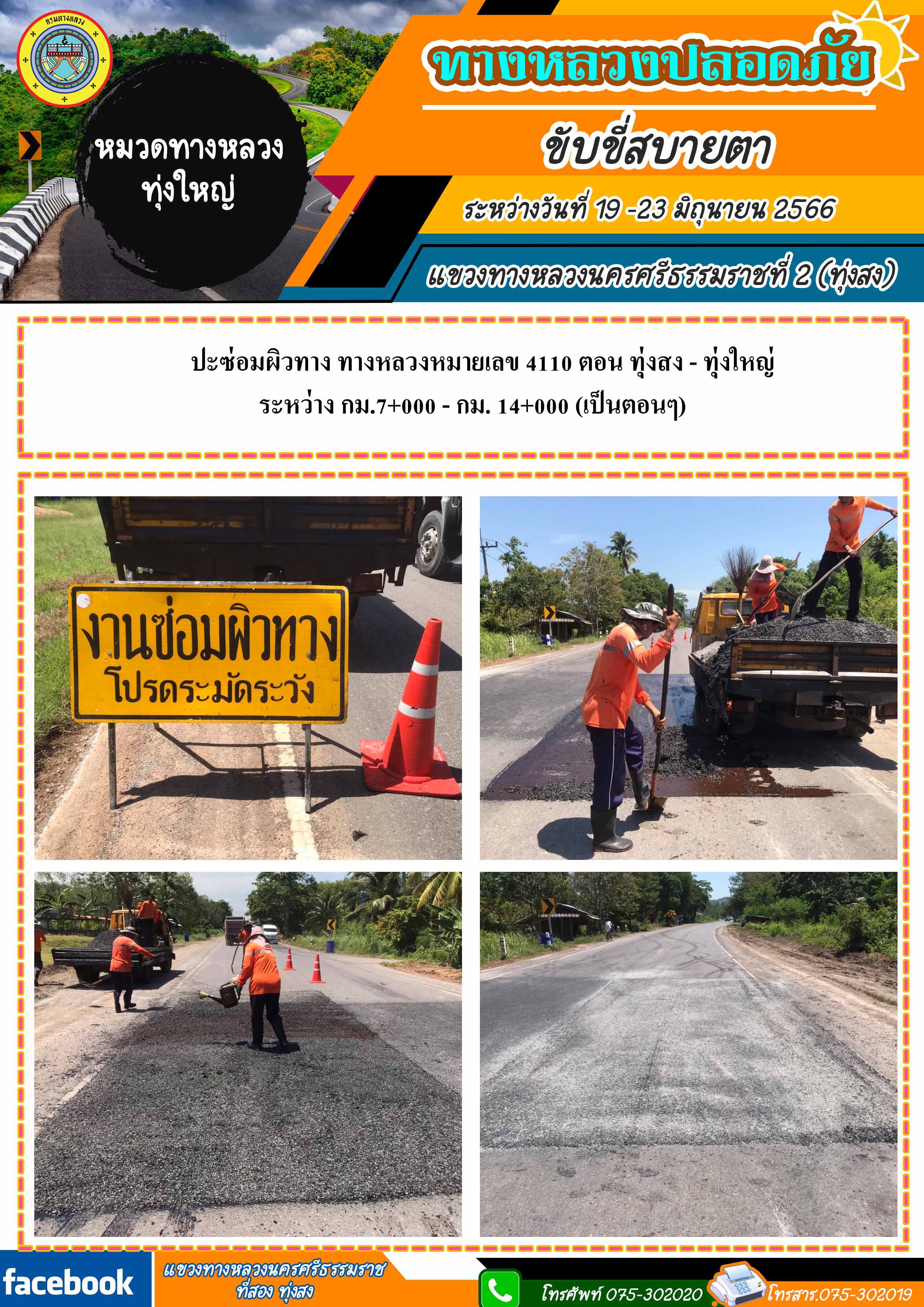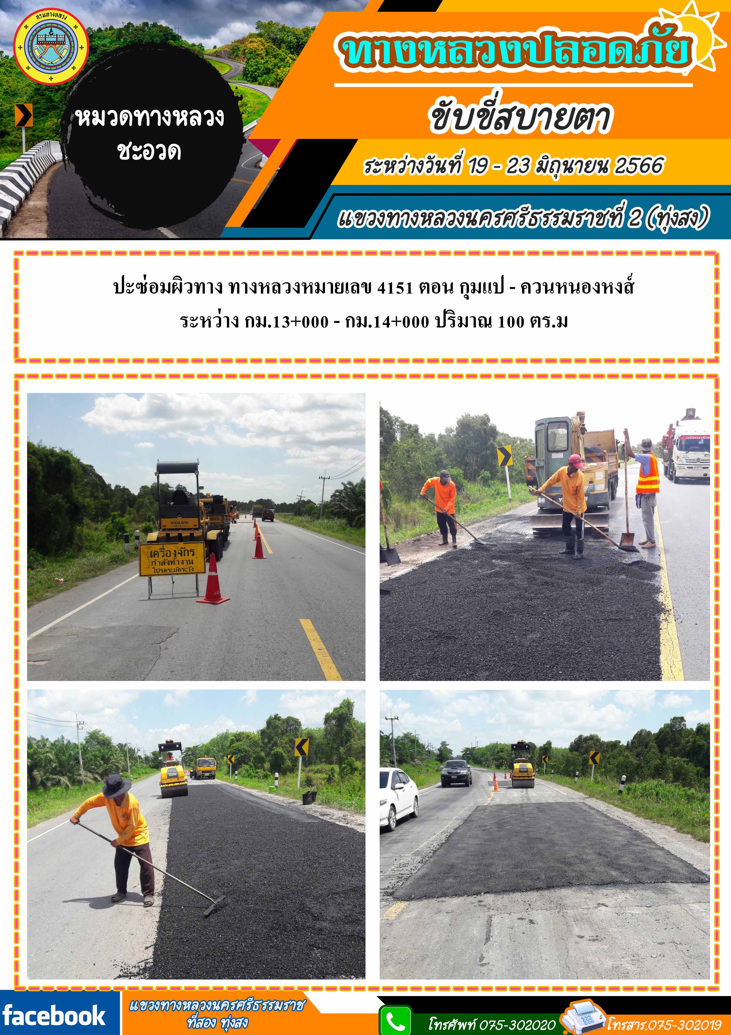 ทางหลวงปลอดภัย ขับขี่สบายตา ผลการปฏิบัติงานประจำสัปดาห์ของแขวงทางหลวงนครศรีธรรมราชที่ 2 (ทุ่งสง) ระหว่างวันที่ 19 - 23 มิถุนายน 2566 โดยหมวดทางหลวงและหน่วยงานในสังกัด