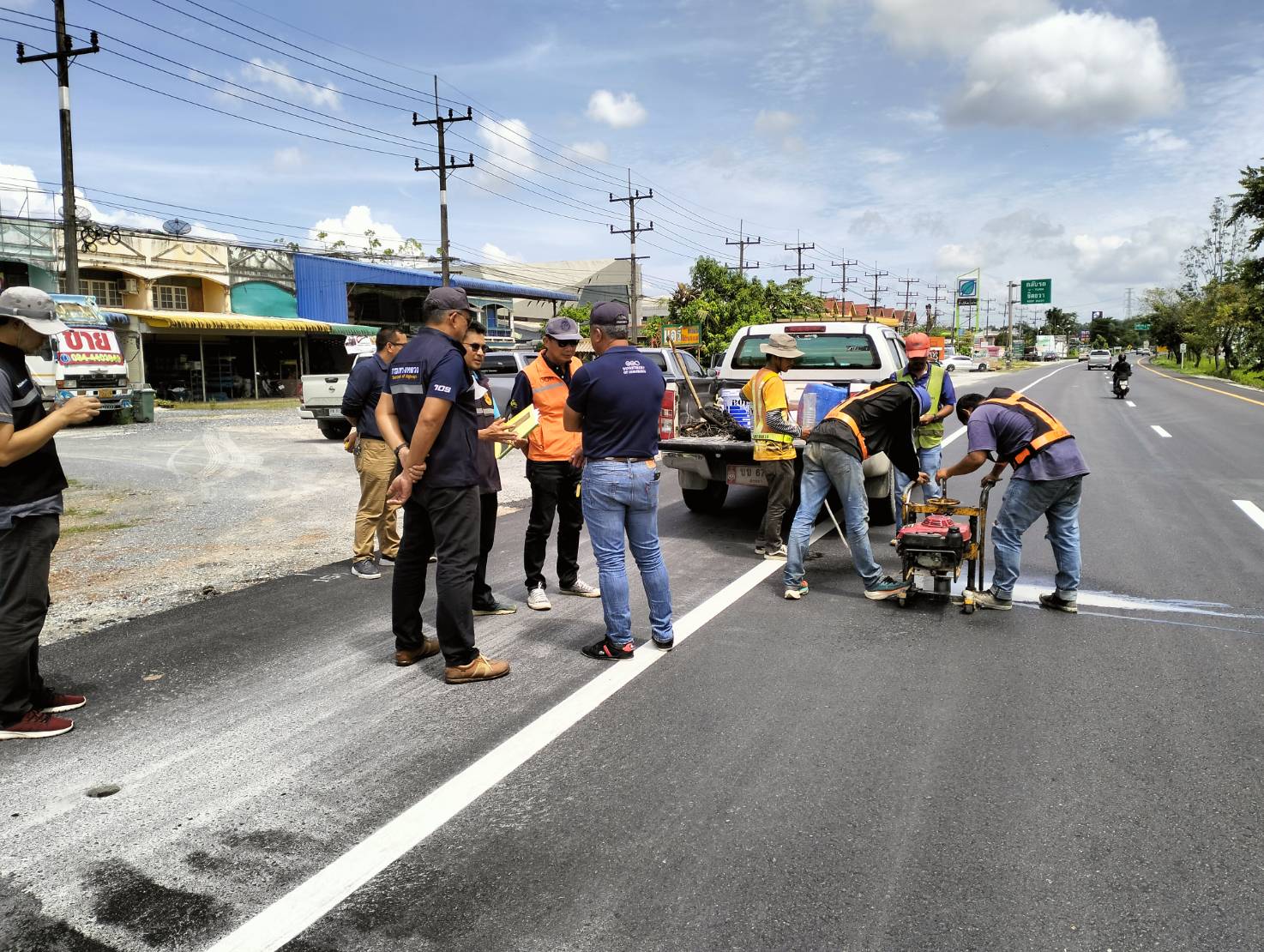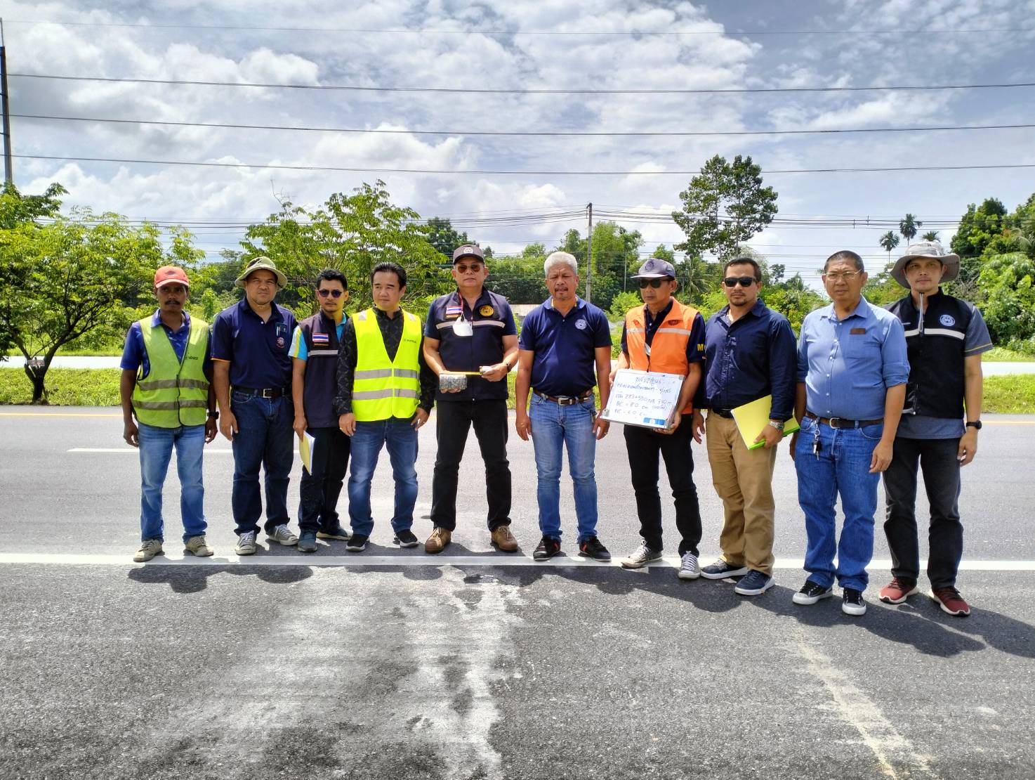 นายไพจิตร แสงทอง ผู้อำนวยการสำนักงานทางหลวงที่ 16 ประธานคณะกรรมการตรวจรับพัสดุ และคณะกรรมการตรวจรับพัสดุ ร่วมกันตรวจรับงานสัญญา ทส.22/2666 งานจ้างเหมาปรับปรุงทางหลวงเพื่อสนับสนุนการท่องเที่ยวกลุ่มจังหวัดภาคใต้ฝั่งอ่าวไทย สาย 41 ตอน ถ้ำพรรณรา - ทุ่งสง ระหว่าง กม.263+500 - กม.292+250 NB.