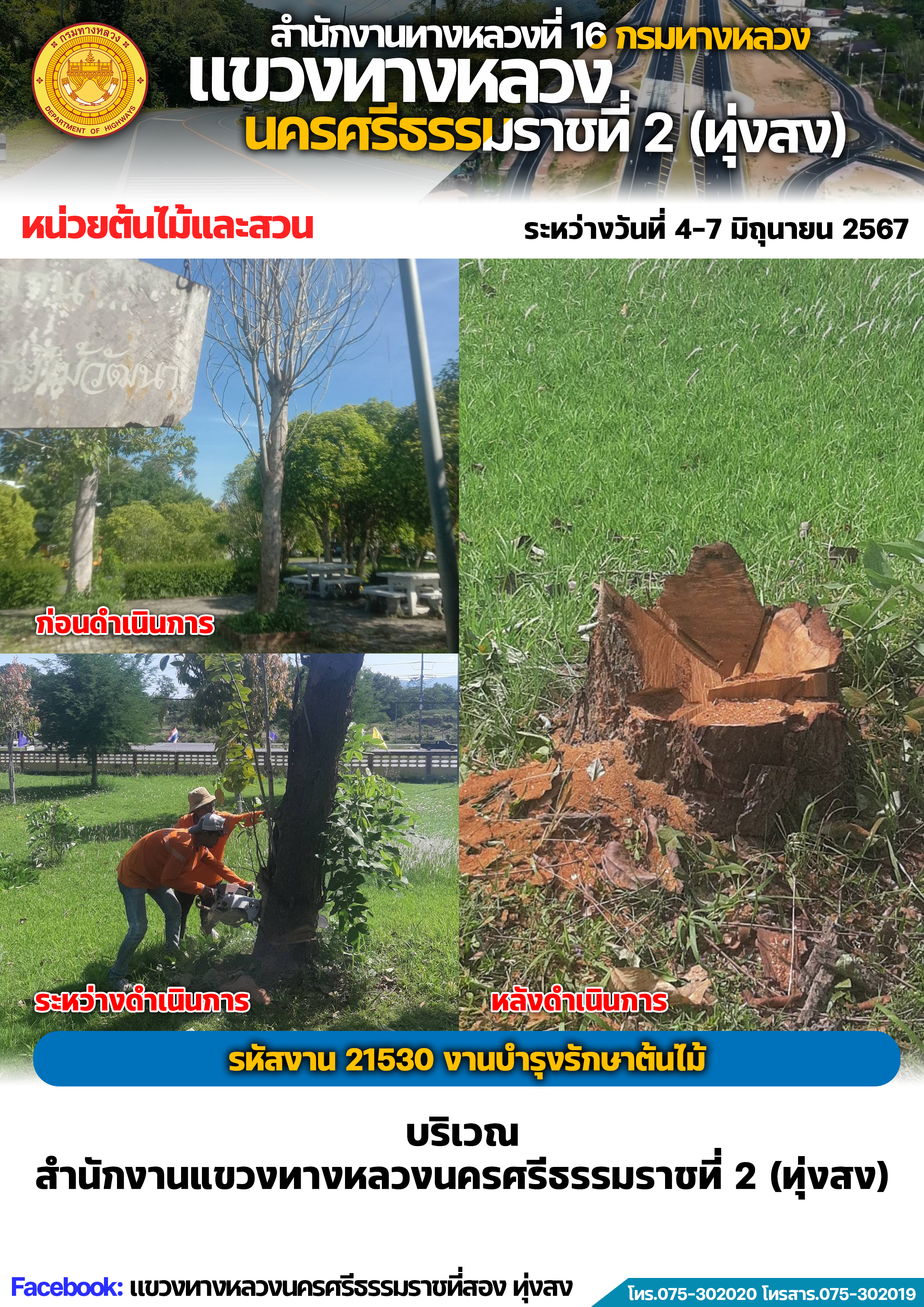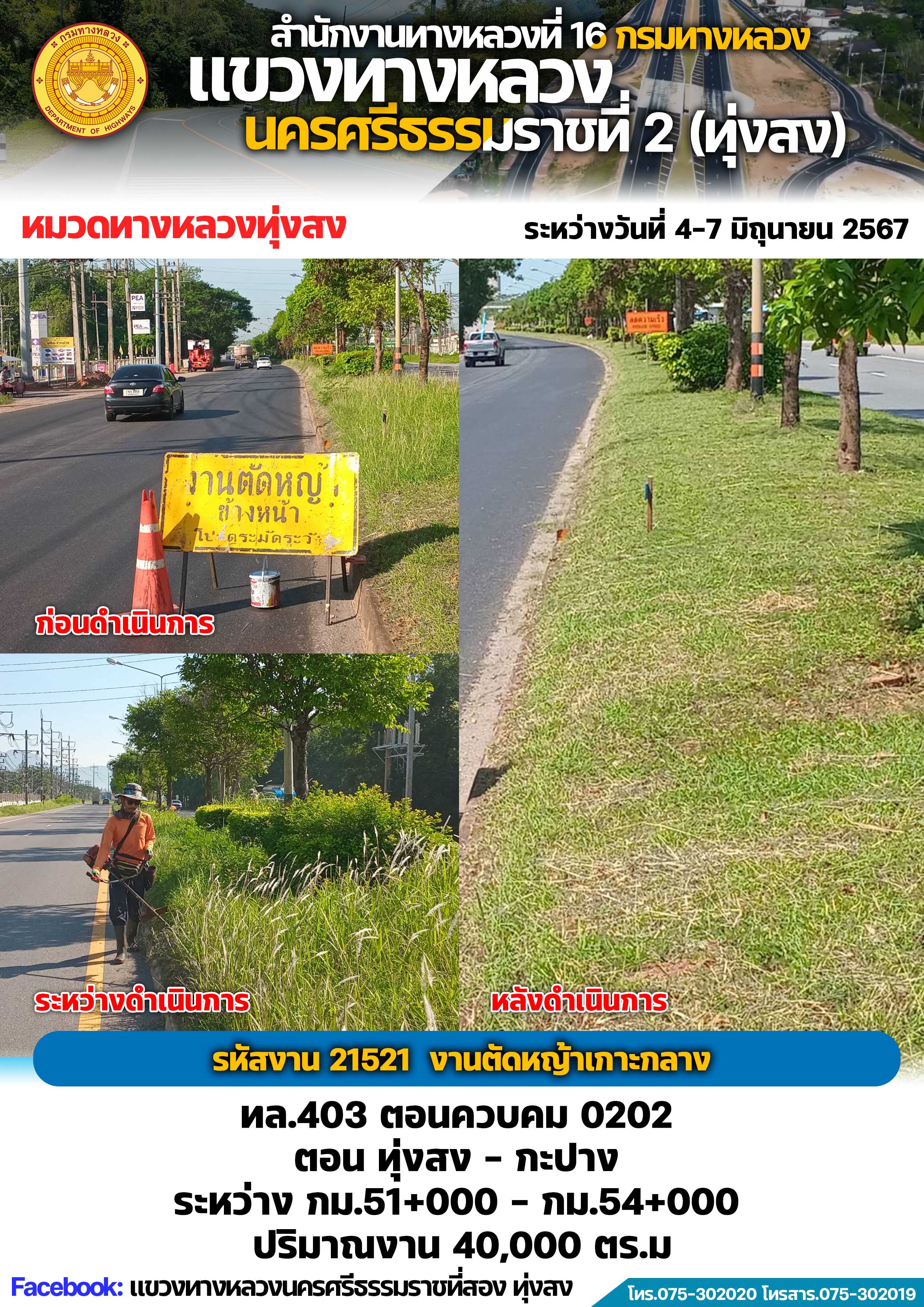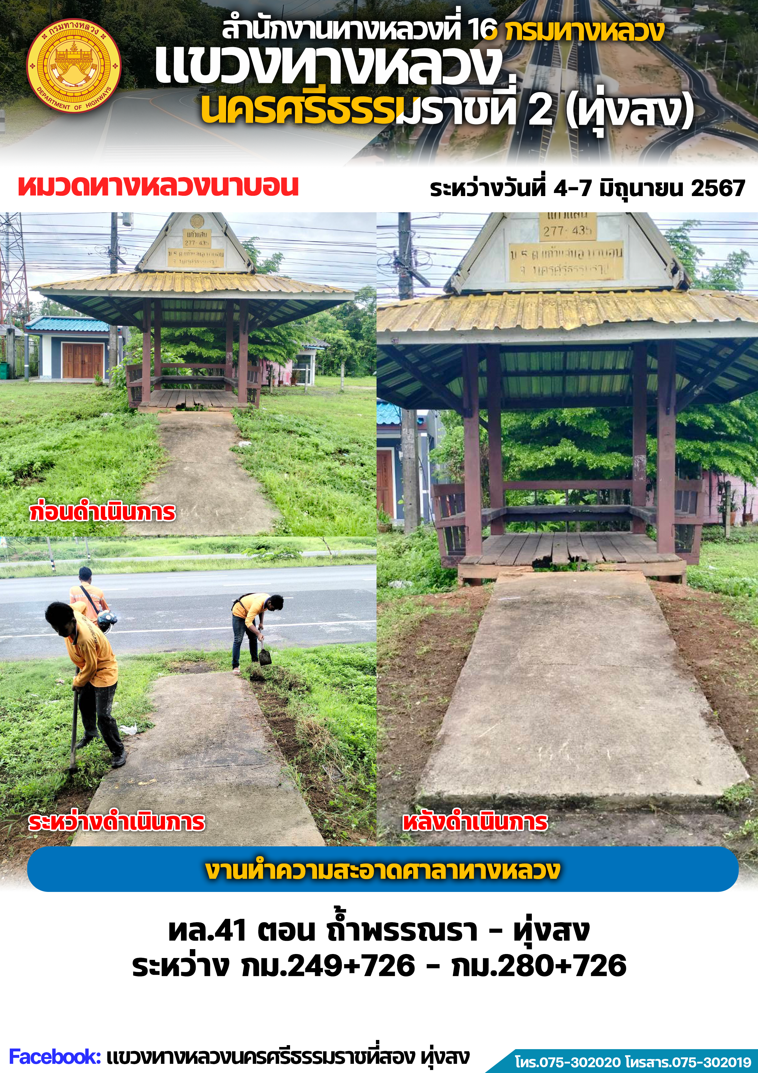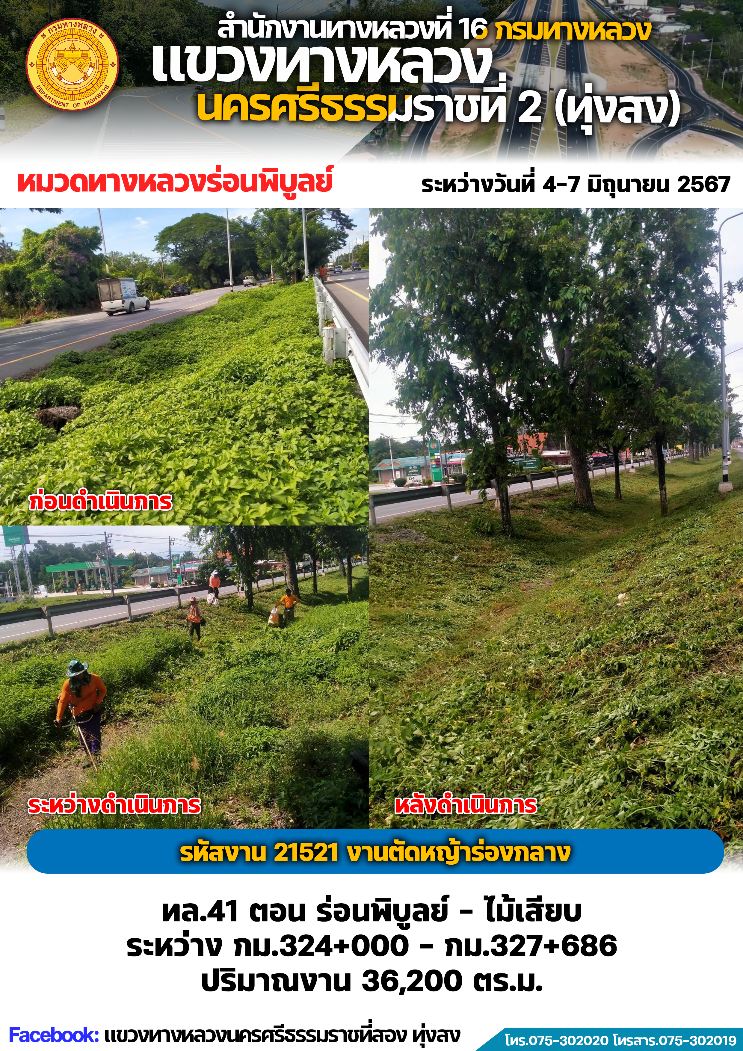 ผลการปฏิบัติงานของหมวดทางหลวงและหน่วยงานในสังกัด แขวงทางหลวงนครศรีธรรมราชที่ 2 (ทุ่งสง) ระหว่างวันที่ 4-7 มิถุนายน พ.ศ.2567