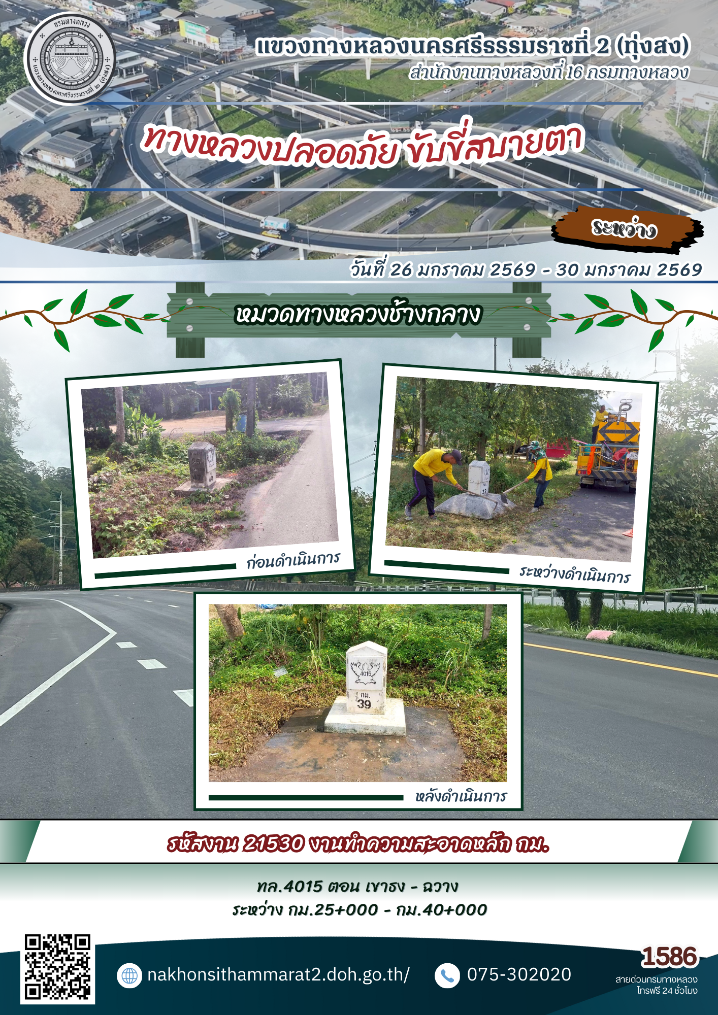 ผลการปฏิบัติงานของหมวดทางหลวงและหน่วยงานในสังกัด แขวงทางหลวงนครศรีธรรมราชที่ 2 (ทุ่งสง) ระหว่างวันที่ 26 - 30 มกราคม 2569